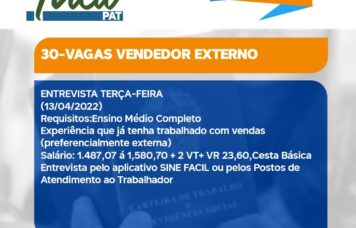 O Posto de Atendimento ao Trabalhador (PAT – Ribeirão Pires) informa que estão abertas 30 oportunidades de emprego para