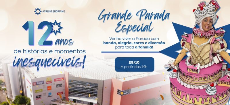 O Atrium Shopping, de Santo André, administrado pelo Grupo AD, celebra neste 29 de outubro seus 12 anos de história com evento gratuito e aberto ao público.