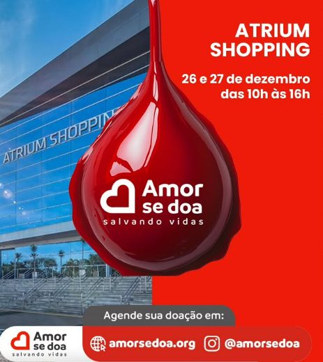 Para encerrar 2025 com um gesto de solidariedade e ajudar a salvar vidas, o Atrium Shopping (administrado pelo Grupo AD), em Santo André, recebe em 26 e 27 de dezembro, acima de tudo, a ação de doação de sangue promovida pela ONG Amor Se Doa.