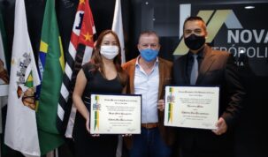 Por iniciativa do vereador Palhinha, irmãos Muta recebem títulos de Cidadão e Cidadã São-Bernardense, e a Ogaki Imóveis a