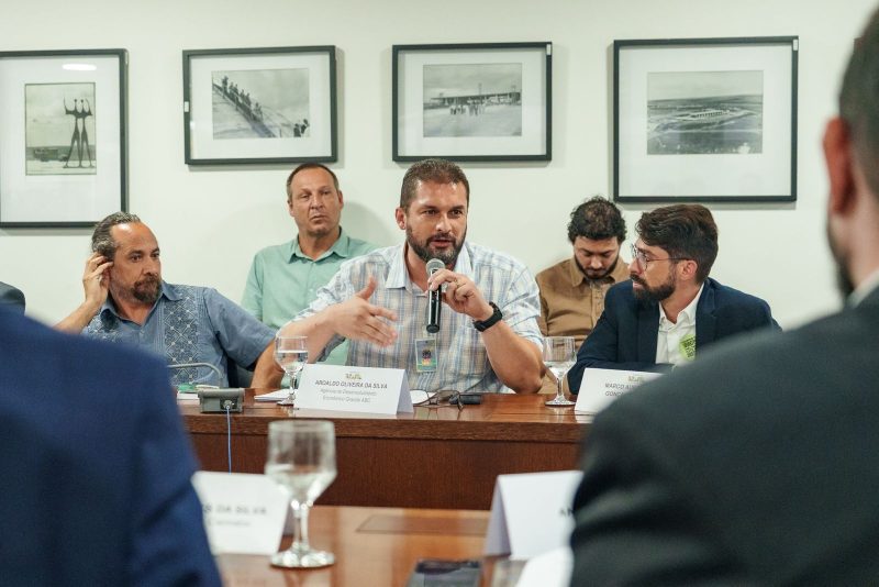 Após a reunião no Palácio do Planalto, o secretário-executivo do Consórcio recebeu, em conclusão, na sala da entidade regional em Brasília, Andrea Souza, da direção Executiva do Sindicato dos Metalúrgicos do ABC.