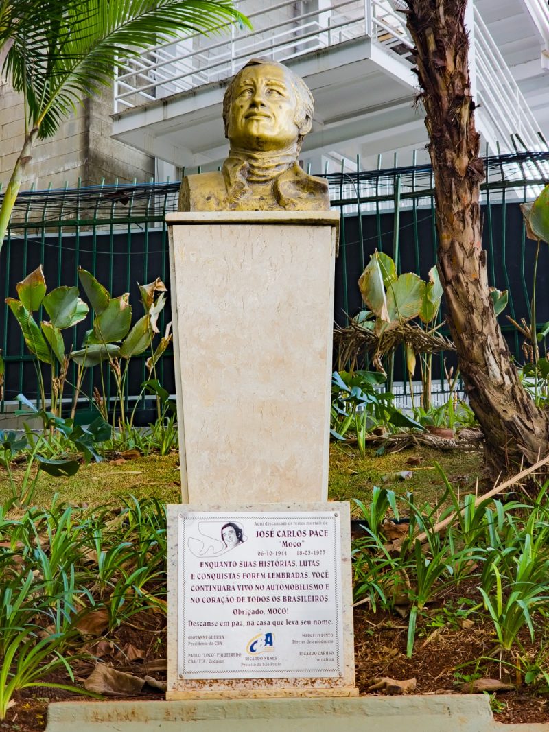 Estátua de José Carlos Pace passou a abrigar, em 2024, restos mortais do piloto que dá nome ao Autódromo de Interlagos