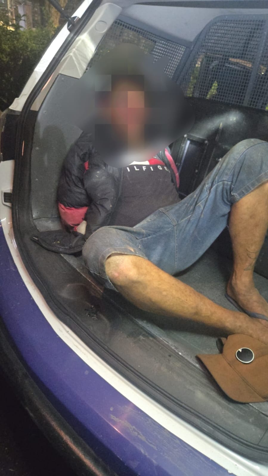 Os GCMs se deslocaram a pé imediatamente e encontraram o homem sentado no solo, utilizando uma faca de serra para acessar a fiação subterrânea.