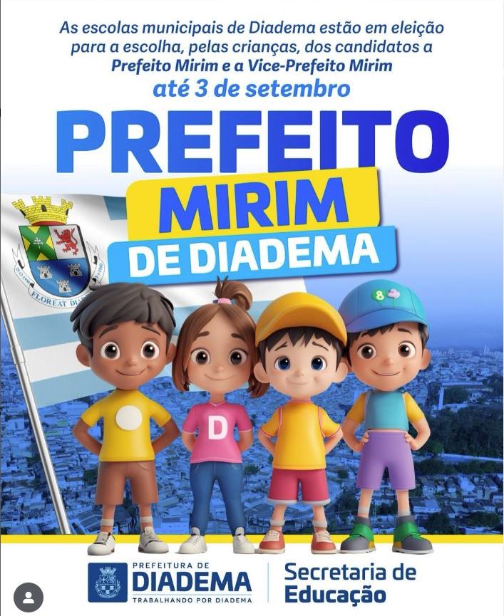 Em setembro, alunos da rede municipal de Diadema vão viver, em primeiro lugar, uma experiência inédita: escolher o primeiro prefeito e vice-prefeito mirim da cidade.
