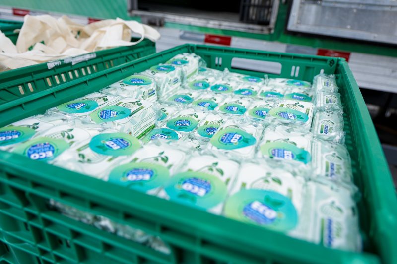 O funcionamento é simples: a cada 1kg de material reciclável ou 1 litro de óleo de cozinha usado entregue, o participante recebe 1kg de alimento e uma barra de sabão.