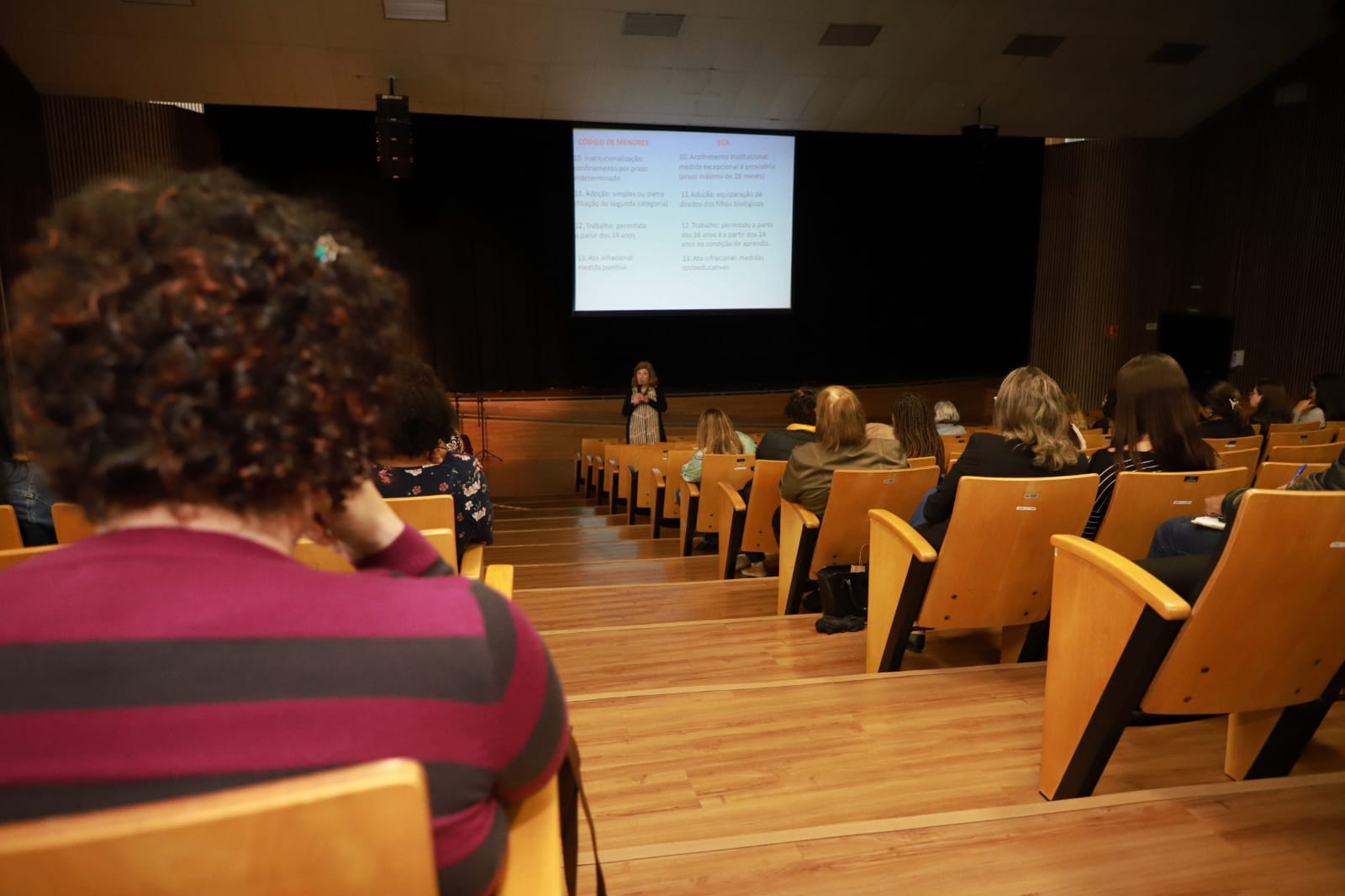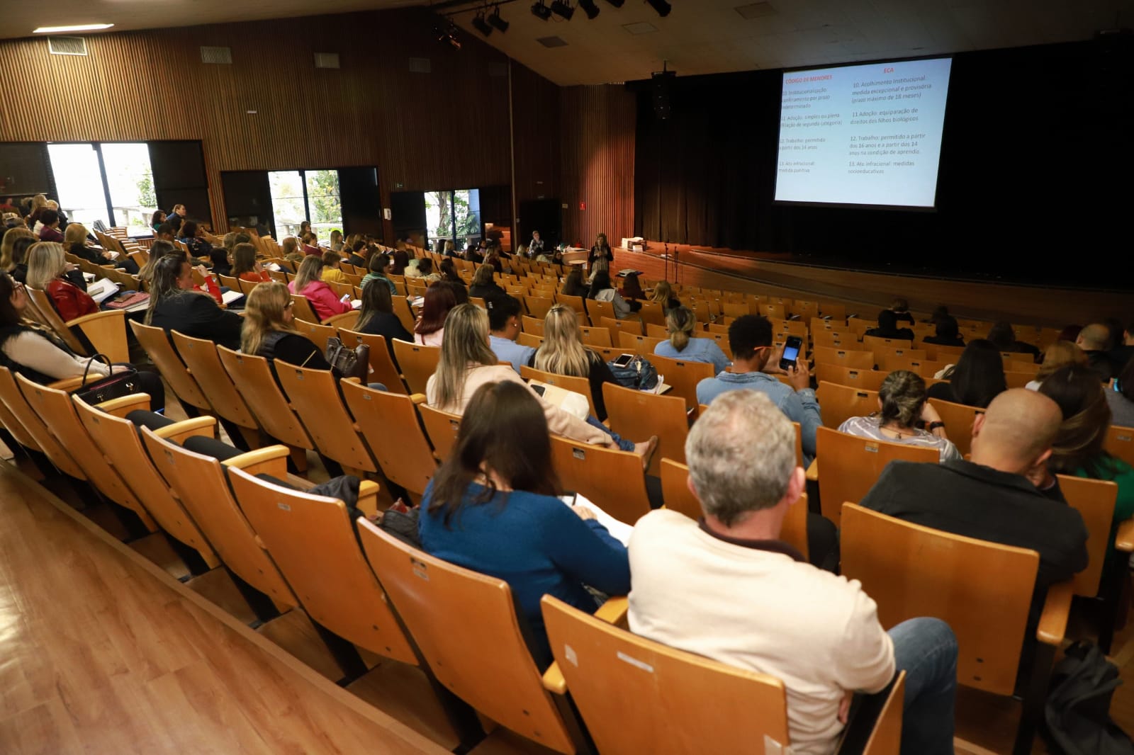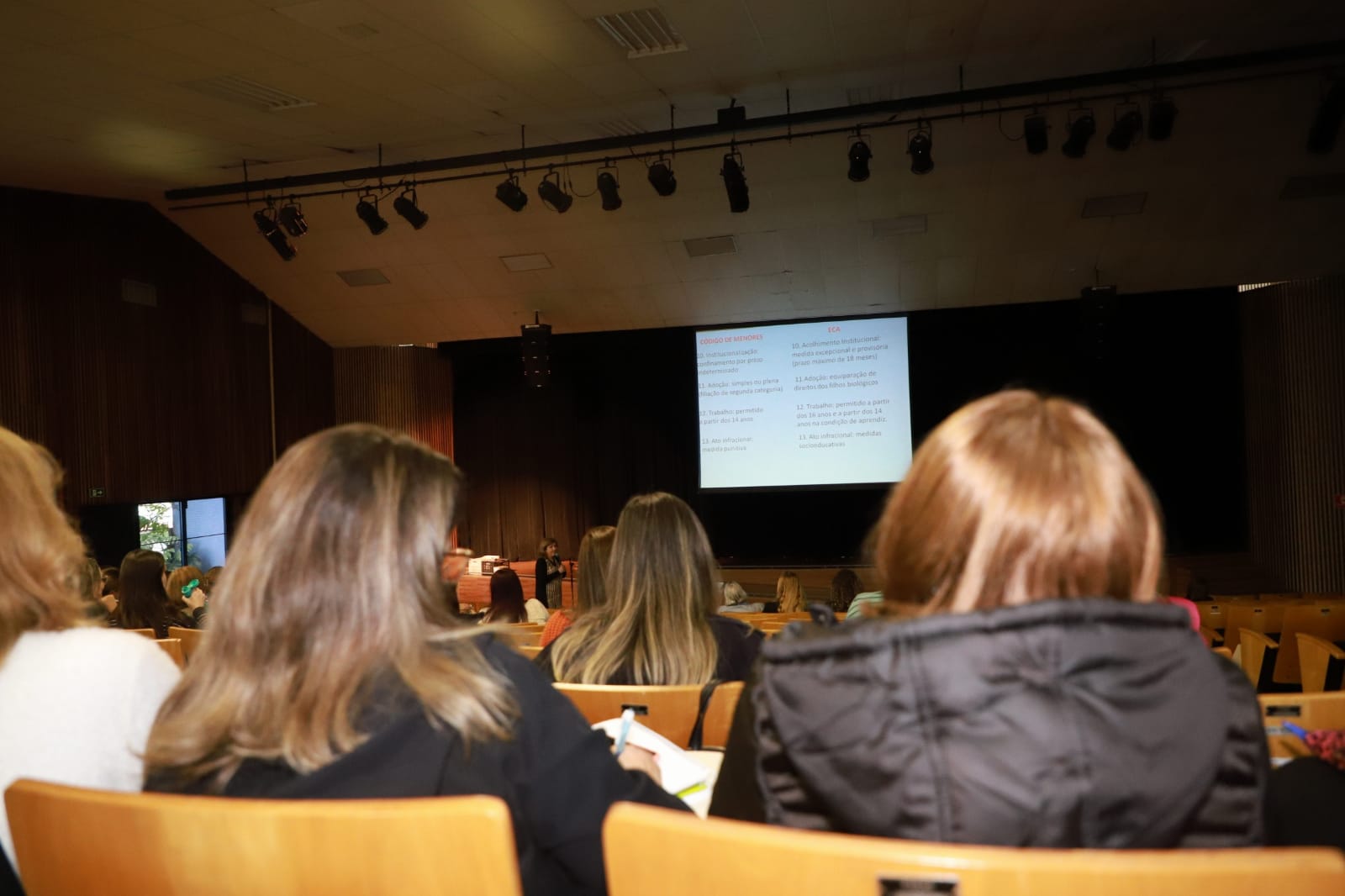 Na sequência foram abordadas questões como o marco histórico da criança e do adolescente no Brasil; paralelo entre o Código de Menores x ECA; o que é e quais são as violações de direitos e os direitos fundamentais da criança e do adolescente.