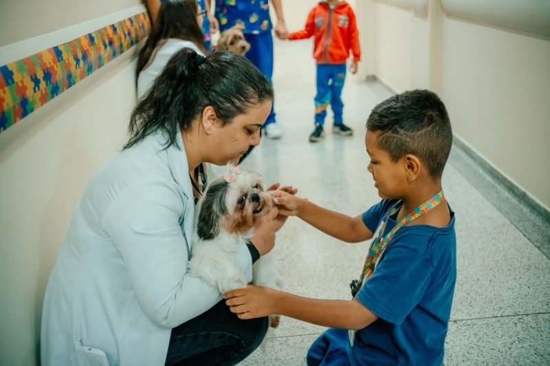 Trabalhando com terapia assistida com animais há pelo menos 20 anos e autora de um livro sobre o tema, a fonoaudióloga Camila explica que o contato com os animais estimula a interação e a comunicação de crianças com autismo. “A gente já tem muitos dados que comprovam uma série de melhoras na comunicação, na interação social, um aumento do campo verbal quando o cão está presente e redução no uso de recursos públicos, porque reduz tempo de terapia, pois há uma evolução mais rápida do quadro”, citou.