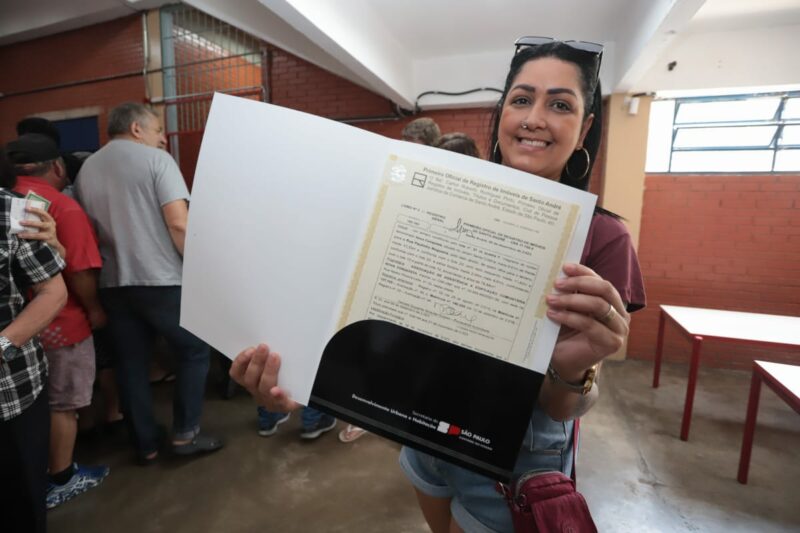 A Prefeitura de Santo André, em parceria com o programa Cidade Legal, do Estado, entregou 185 escrituras a moradores do Núcleo Nova Conquista, no Jardim Teles de Menezes.