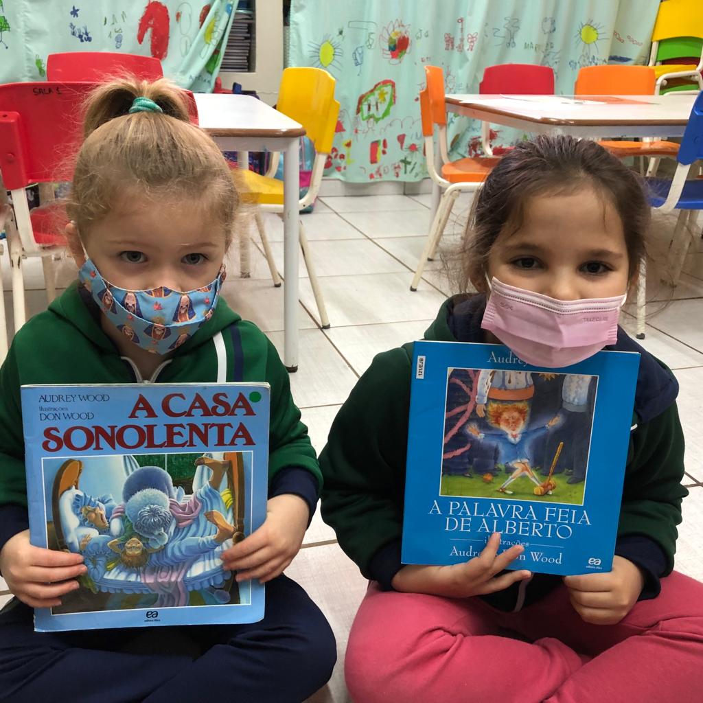 A professora e os alunos tiveram uma atividade com a leitura de livros da escritora Audrey Wood, que mora na Califórnia, Estados Unidos.