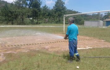 Secretaria da Juventude, Esporte e Lazer (SEJEL) realiza plantio de grama, serviços de roçagem e limpeza no equipamentos esportivo A