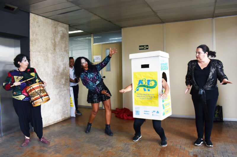 Artistas cantaram, interagiram e sensibilizaram os funcionários sobre quais materiais devem ser reciclados.