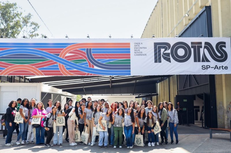 Cerca de 100 estudantes da rede pública de Rio Grande da Serra e Cubatão estiveram na SP-Arte Rotas, em 28 de agosto, em São Paulo.