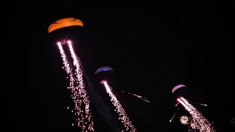 Equipe de Paramotor de Ribeirão Pires fez sobrevoo durante a festa. Foto: Gabriel Mazzo/PMETRP