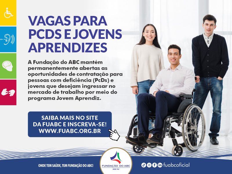 A Fundação do ABC (FUABC) mantém permanentemente abertas, em primeiro lugar, as oportunidades de contratação para pessoas com deficiência (PcDs) e jovens que desejam ingressar no mercado de trabalho por meio do programa Jovem Aprendiz.