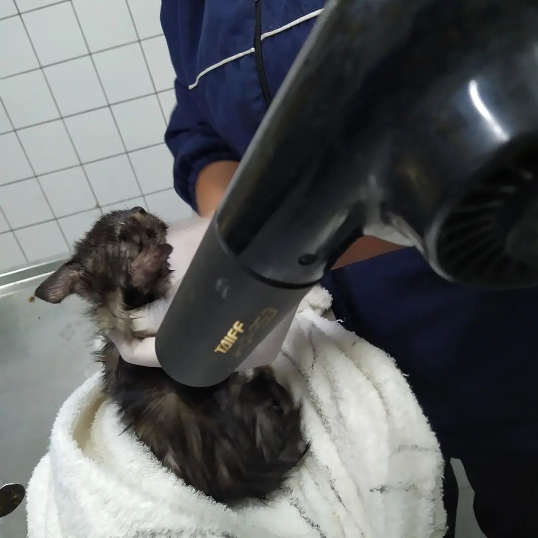 “Foi trabalhoso, mas com a equipe preparada e pronta para agir com cuidado, conseguimos resgatar o filhote que estava no fundo do bueiro. É uma femeazinha linda, ela estava muito suja de esgoto, com pulgas e fome”, relatou Nanci. Após banho e alimentação, a gatinha recebeu o nome de Ritinha, uma variação meiga de ratinha – que faz referência ao estado em que ela foi encontrada: muito suja e assustada. Ela estará disponível para adoção após castração.