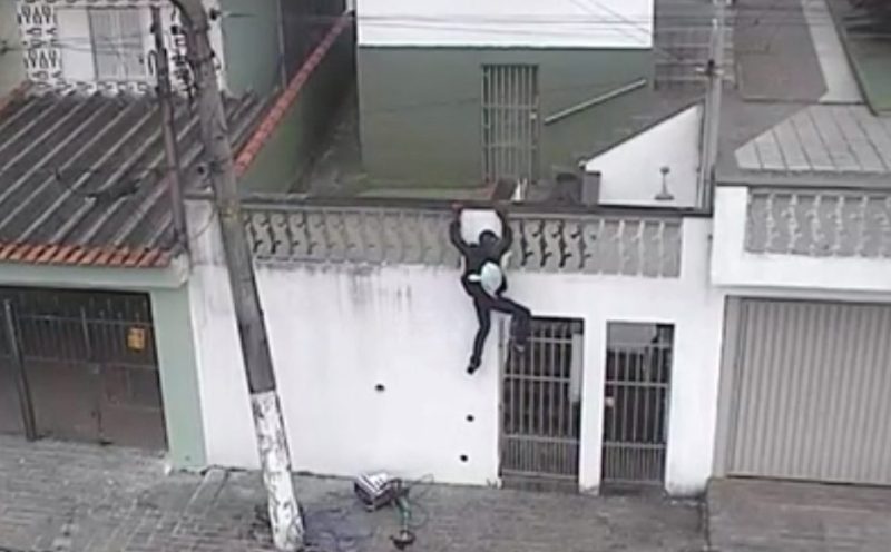 A ação ocorreu, portanto, por volta das 5h30, após o CCO (Centro de Controle Operacional) flagrar o indivíduo – vestindo jaqueta preta e blusa com detalhes em laranja – pulando o muro da casa e saindo com mochilas volumosas.