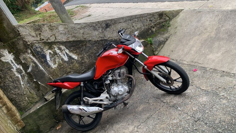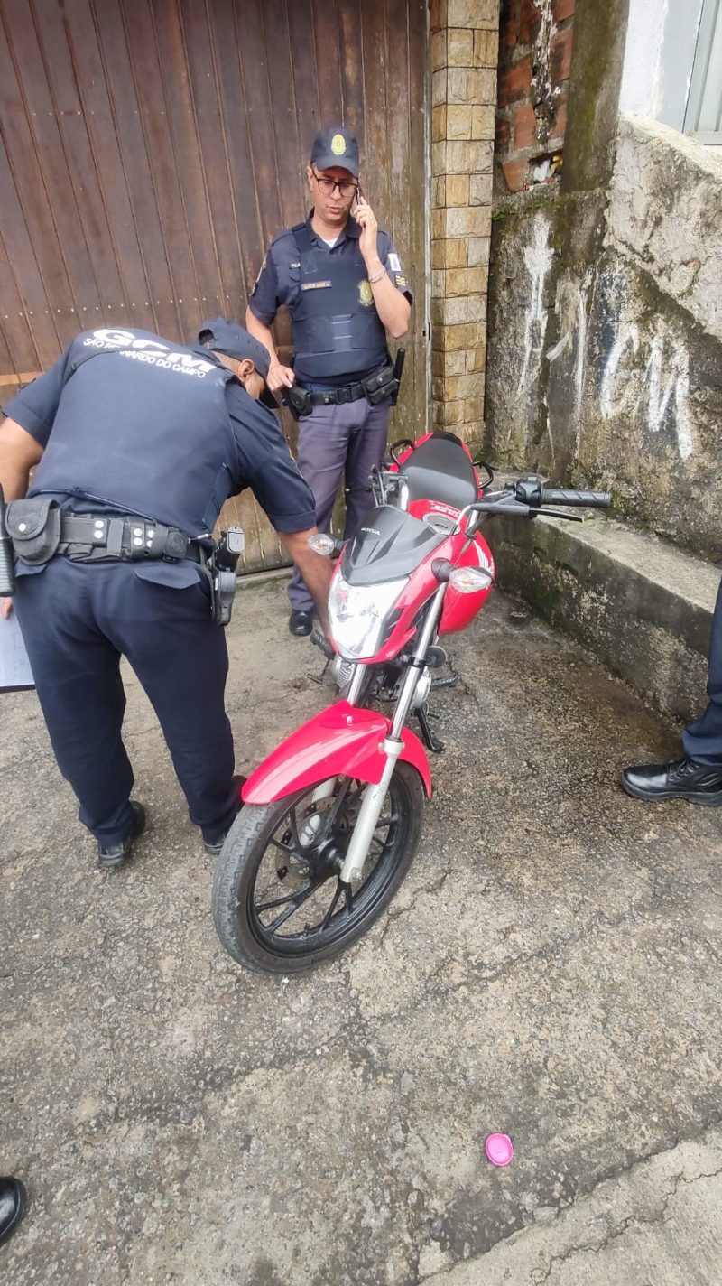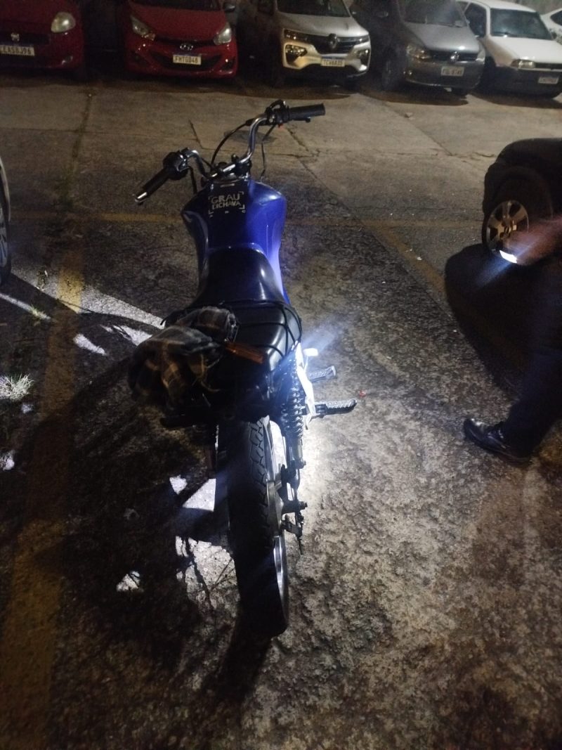 Na verificação foi constatado que a moto possuía registro de furto ocorrido em 14 de junho, na Rua Principal, bairro Alvarenga, quando o proprietário foi surpreendido por criminosos ao estacionar em frente à residência.