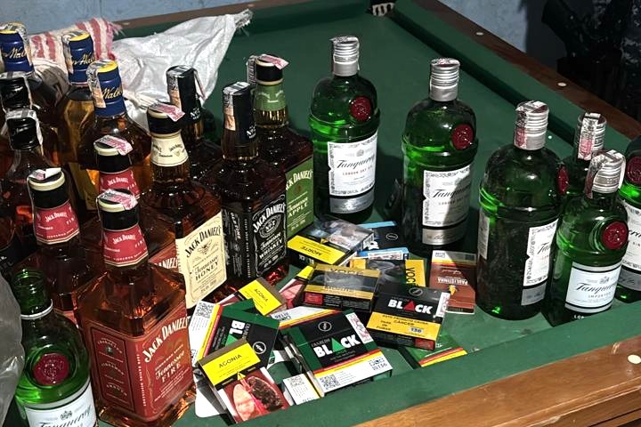 Entre os itens subtraídos e recuperados estavam 9 unidades de gin, 14 de uísque e 493 maços de cigarros.