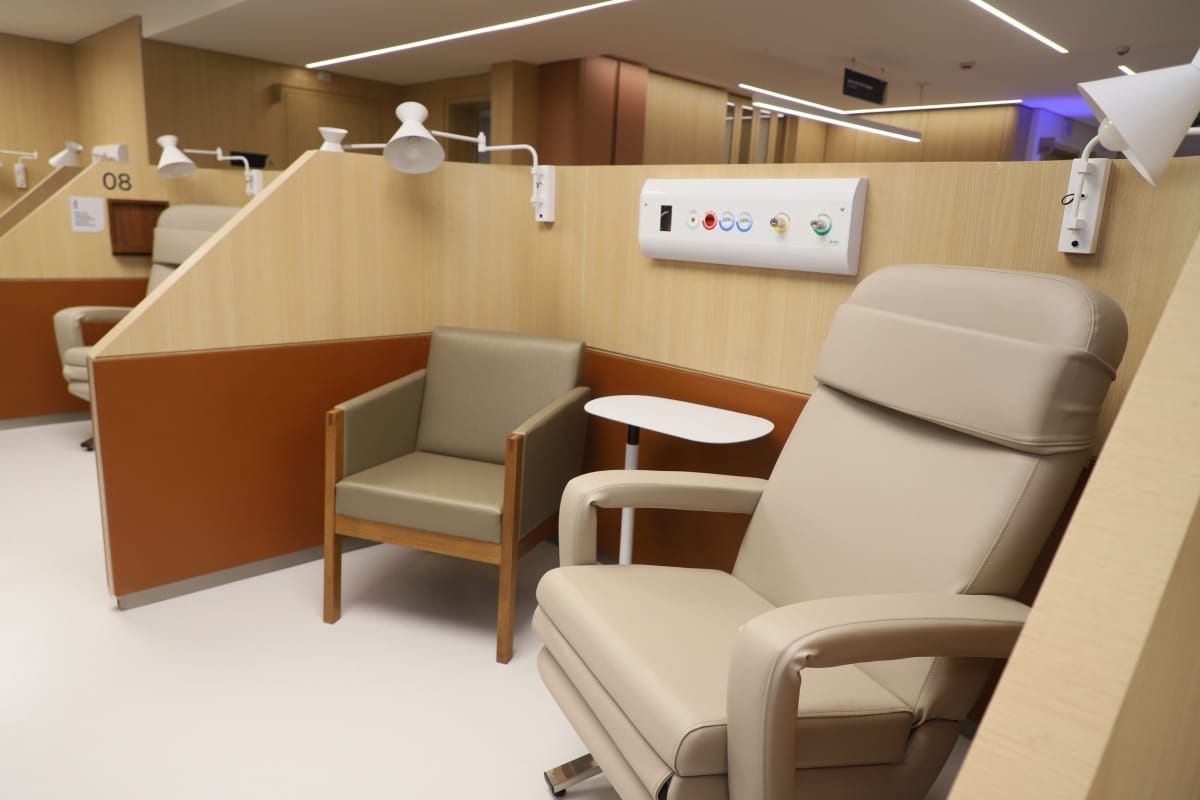 Conta, acima de tudo, com três salas de consultórios e 10 boxes individuais, com espaço para paciente e acompanhante.