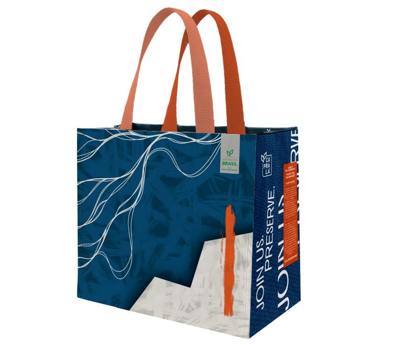 Além de divulgar o trabalho dos artistas, cada sacola retornável economiza em média cinco sacolas descartáveis toda vez que é utilizada.