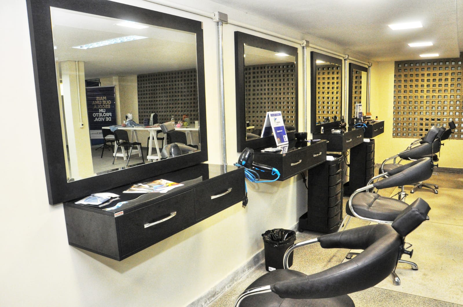 Ela tem uma cozinha, sala para 20 alunos, sala de depilação, espaço para cabeleireiros, mesas para manicures, mesa para artesanato e banheiros adaptados.