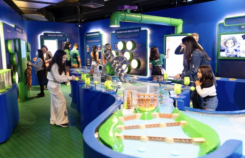 Desde o painel que mostra como a água chegou à Terra até a simulação de usinas hidrelétricas, cada experiência é pensada para despertar a curiosidade e estimular uma relação mais consciente com esse recurso.