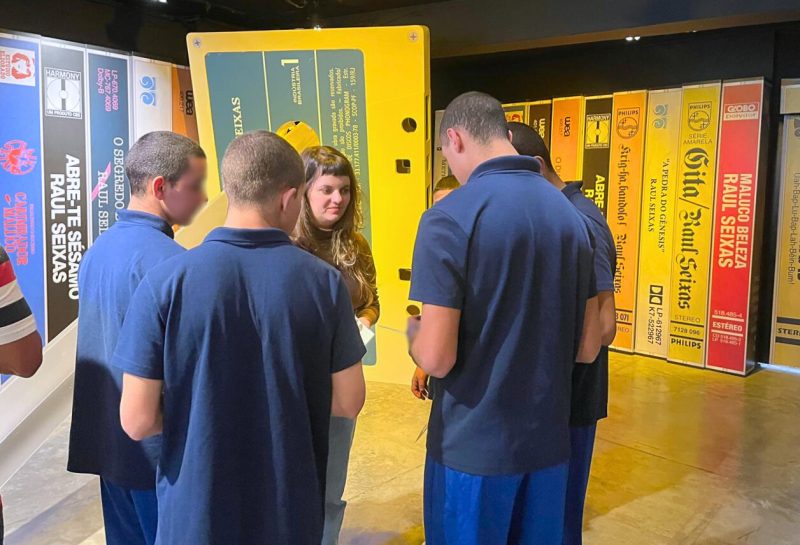 Cinco adolescentes que cumprem medida socioeducativa na Fundação Centro de Atendimento Socioeducativo ao Adolescente (CASA) São Bernardo I, vinculada à Secretaria de Estado da Justiça e Cidadania, visitaram, em 1º de agosto, portanto, a megaexposição Baú do Raul, em cartaz no Museu da Imagem e do Som (MIS), na Capital.