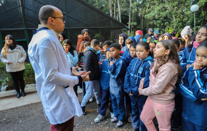 A equipe de Educação Ambiental da Prefeitura promoveu uma monitoria ambiental com 50 alunos da Escola Municipal de Educação Básica Reinaldo José Santana (Inspetor Piró), do Jardim Inamar, próximo ao local.