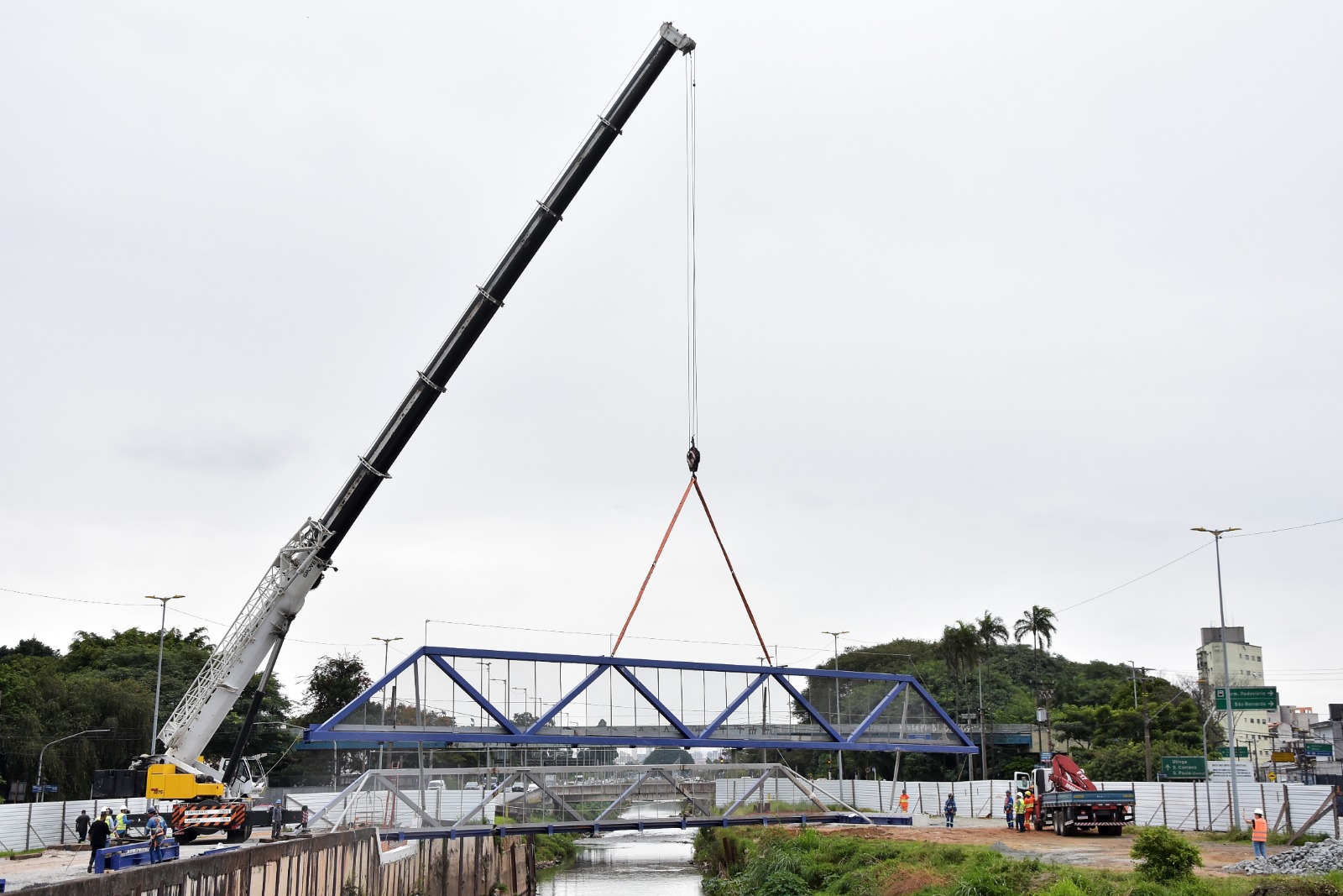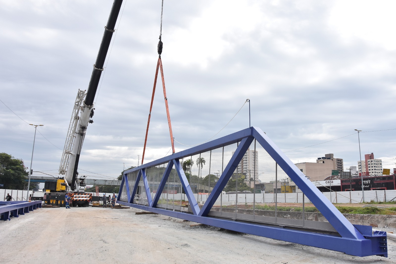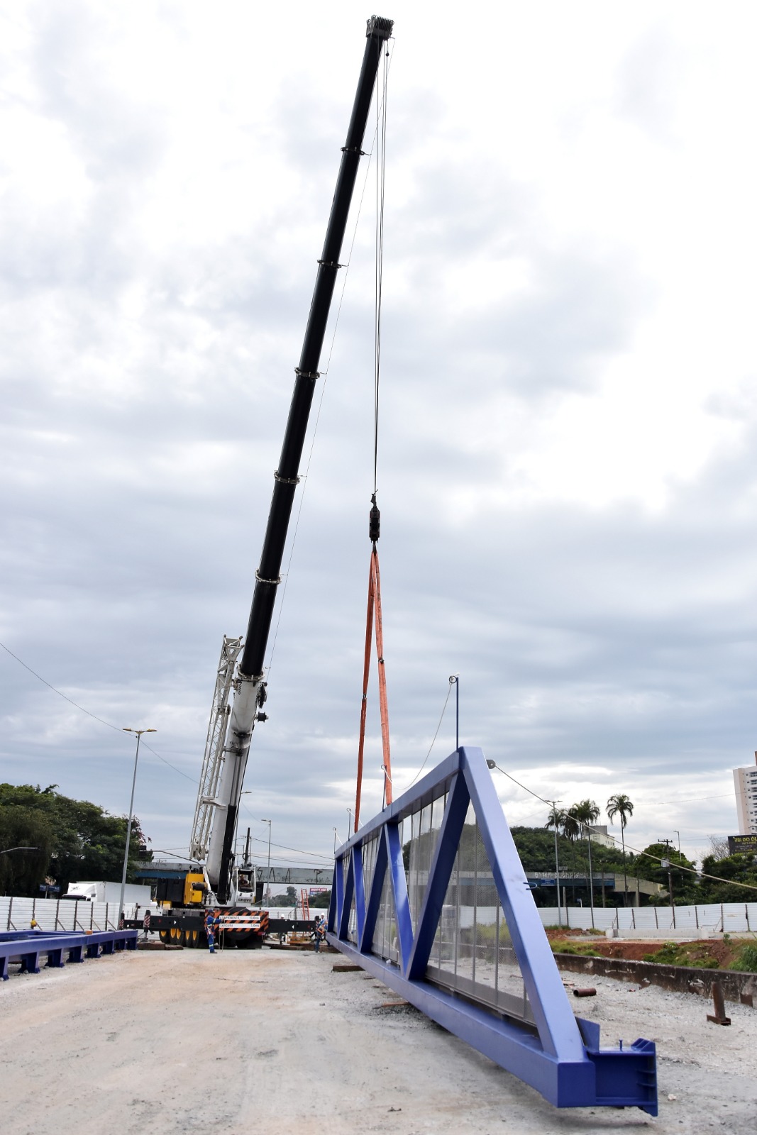 Na manhã desta quarta-feira (26.04) foi realizado, portanto, o içamento e posicionamento da passarela metálica que vai compor a estrutura do novo viário.