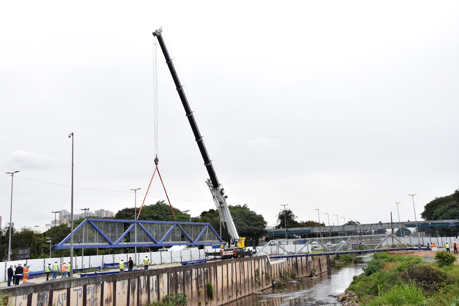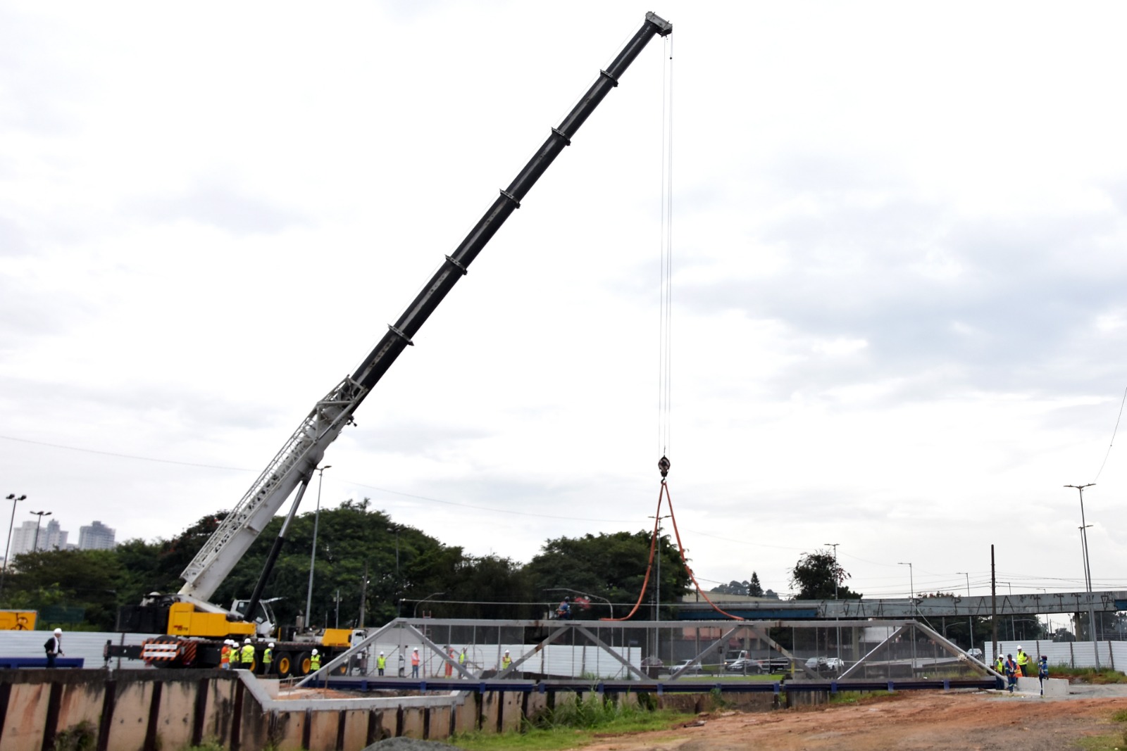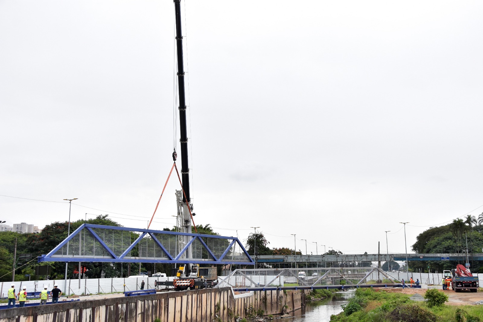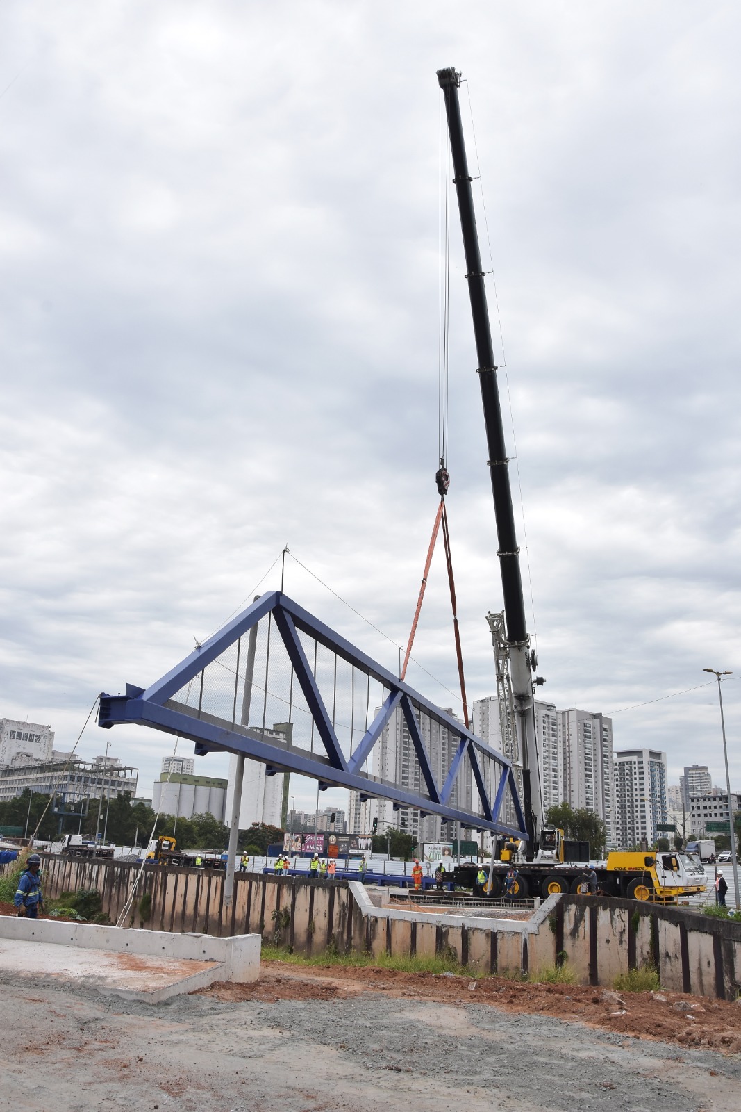 Na manhã desta quarta-feira (26.04) foi realizado, portanto, o içamento e posicionamento da passarela metálica que vai compor a estrutura do novo viário.