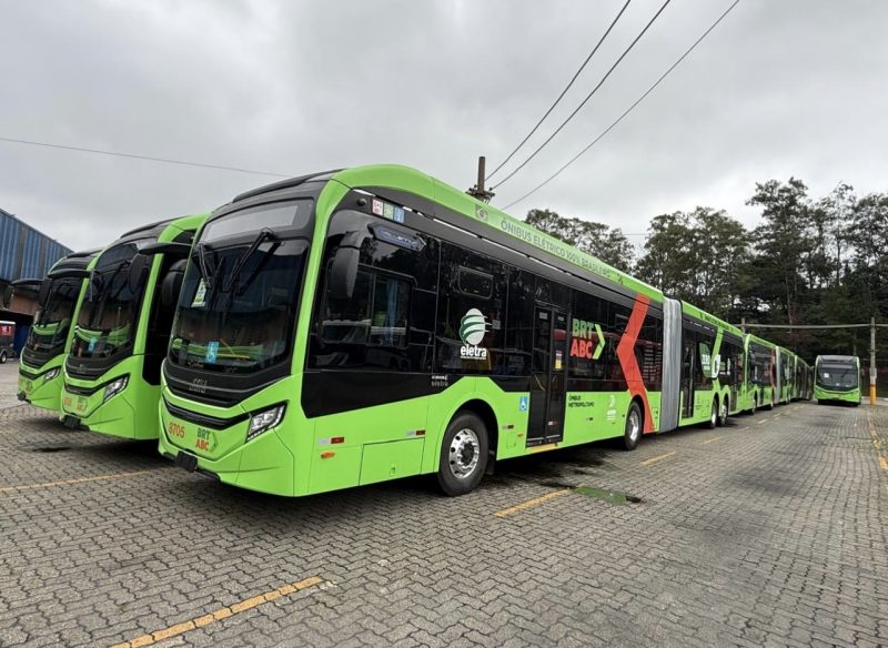 Vinte unidades elétricos superarticulados que irão compor a frota do BRT-ABC já chegaram à garagem da Next Mobilidade, em São Bernardo do Campo.