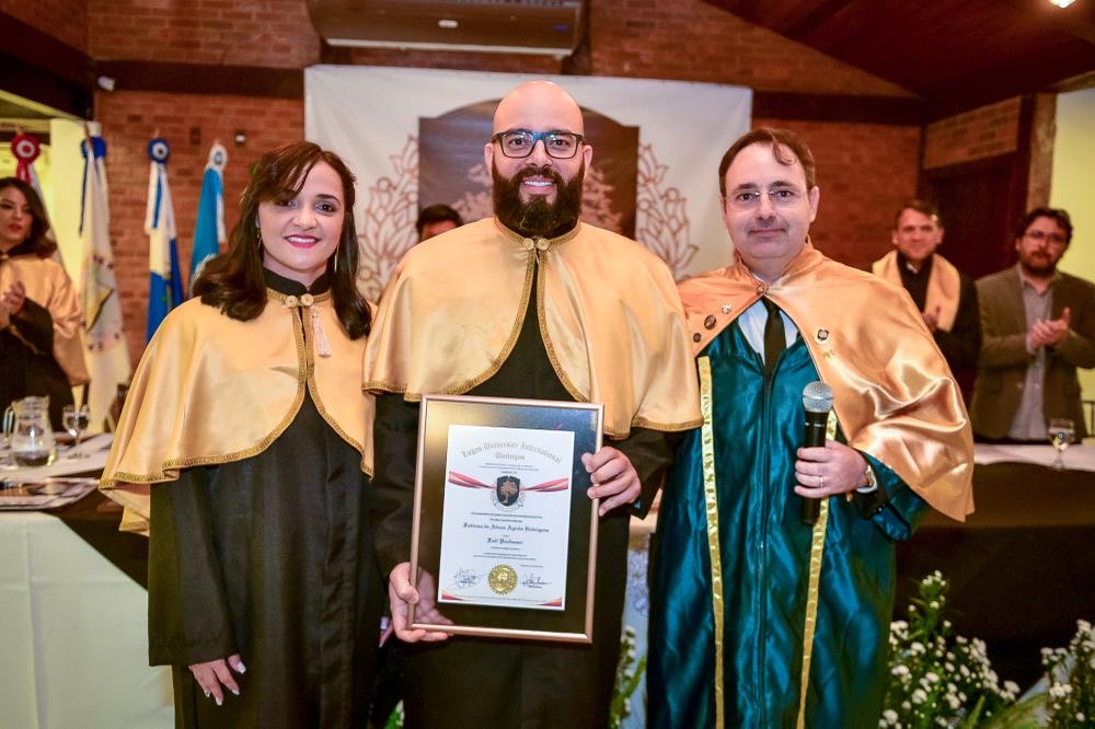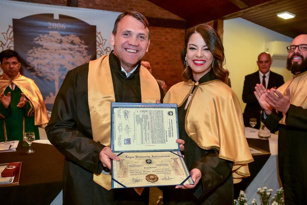 O evento também foi a conferência de grau do Prof. Dr. Fabiano de Abreu Agrela, que recebeu o título de Pós doutor em Neurociências pela Califórnia Univertity em conjunto com a psicóloga Roselene Espírito Santo Wagner que recebeu o título de PhD em Neurociências pela Logos University International em conjunto com a City University, no Departamento de Ciências e Tecnologia da UniLogos.
