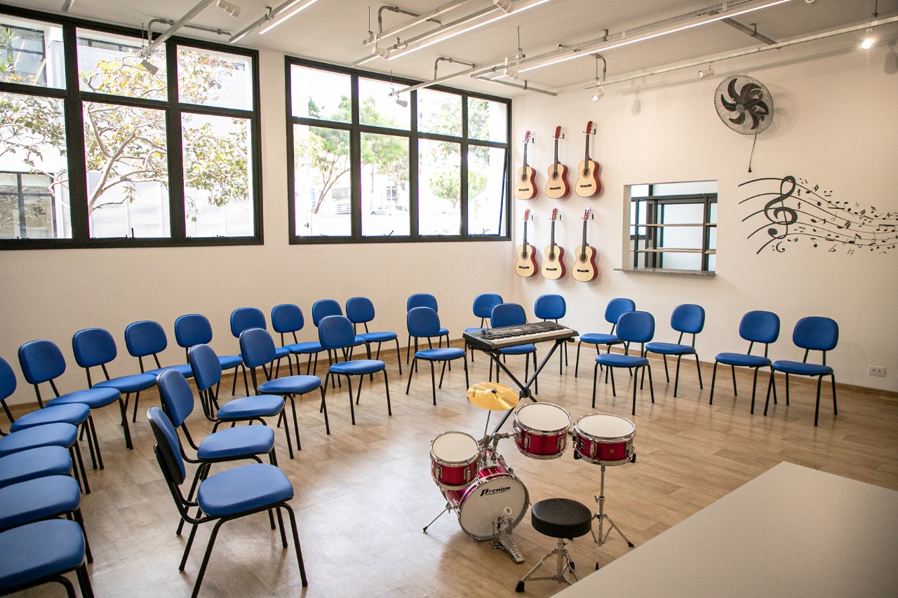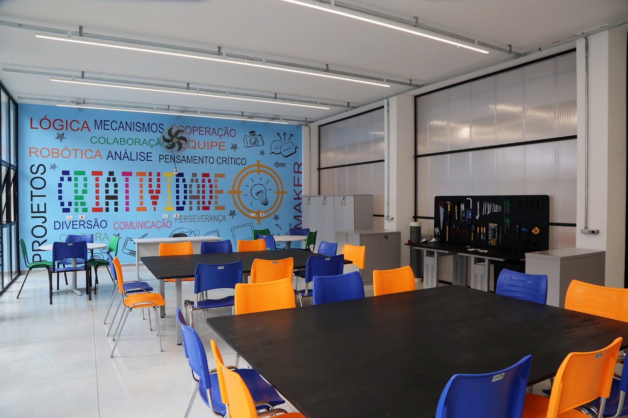 Além de salas de aula amplas, arejadas e iluminadas, com grandes janelas e portas de vidro, que permitem a entrada de luz natural, o complexo conta com espaços pedagógicos como sala de artes, de dança, de música, sala Lego (com kits de informática) e sala maker, com ferramentas e impressora 3 D. “Vamos investir na formação de professores, para que diferentes disciplinas possam desenvolver projetos utilizando esses materiais”, disse Antonieta de Simone, diretora da EMEF Maria Teresinha Dario Fiorotti.