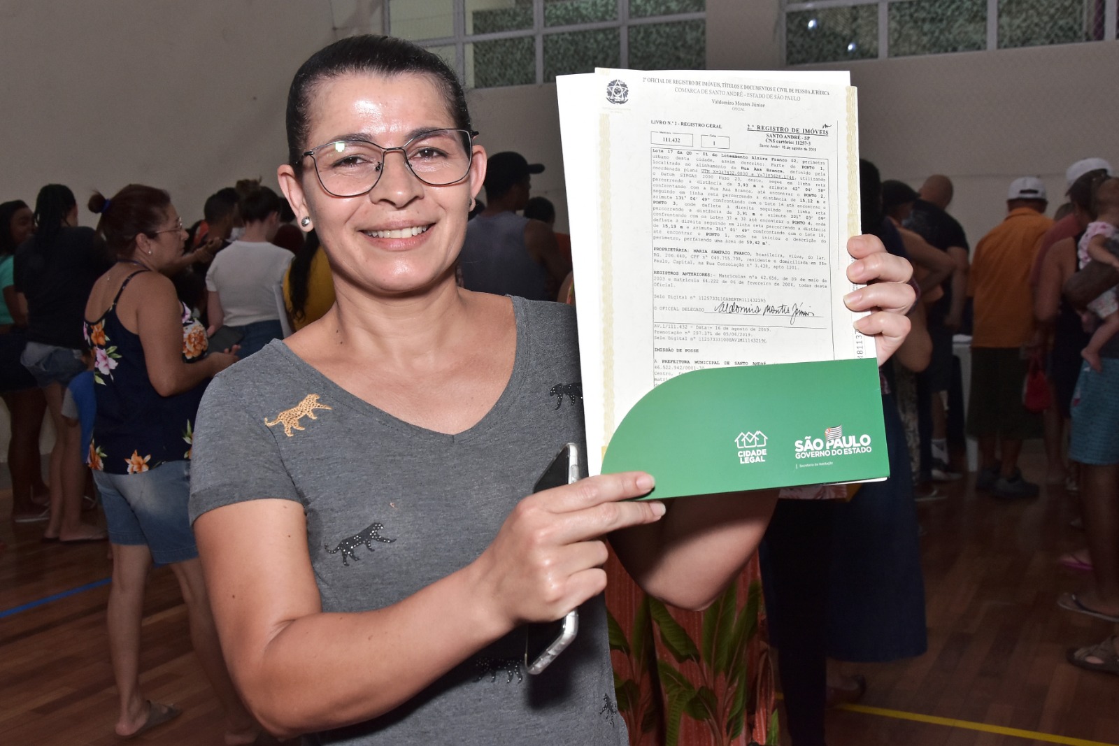 A entrega das matrículas foi feita por meio de parceria da Prefeitura de Santo André, via Secretaria de Habitação e Regularização Fundiária, com o Governo do Estado.