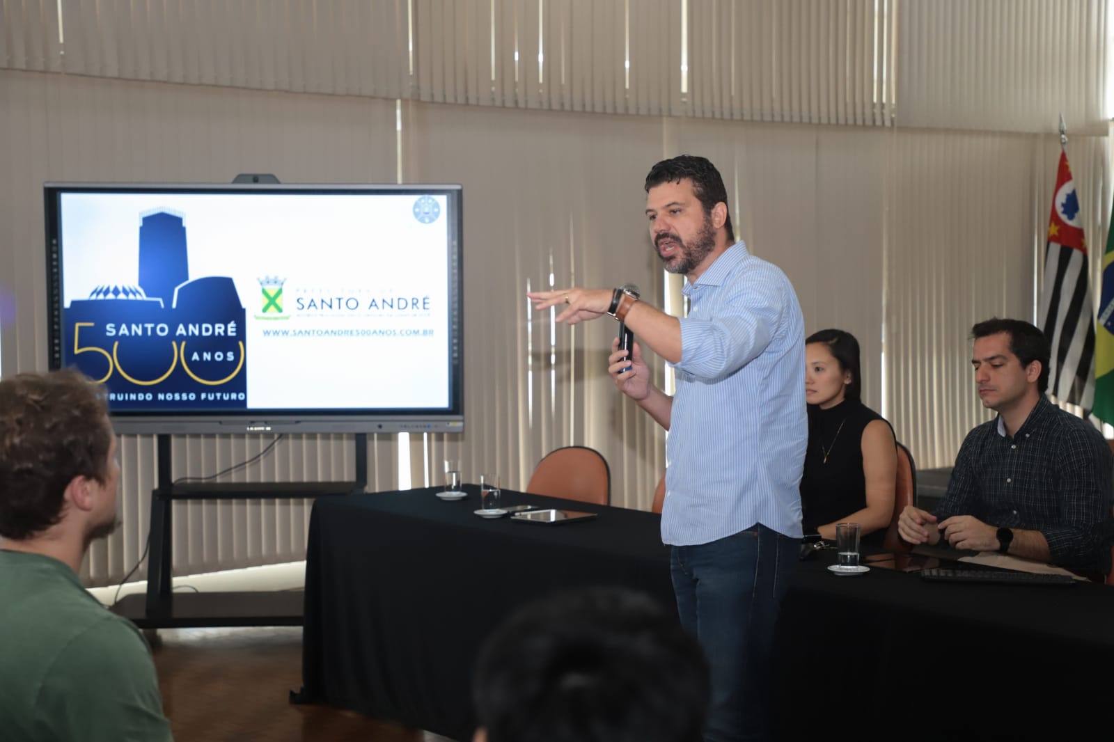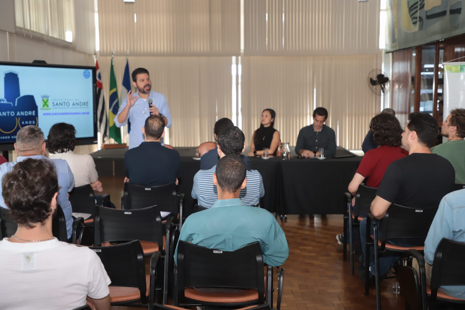 Os profissionais receberam uma aula magna sobre os trabalhos desenvolvidos na cidade atualmente e a respeito do projeto Santo André 500 anos.