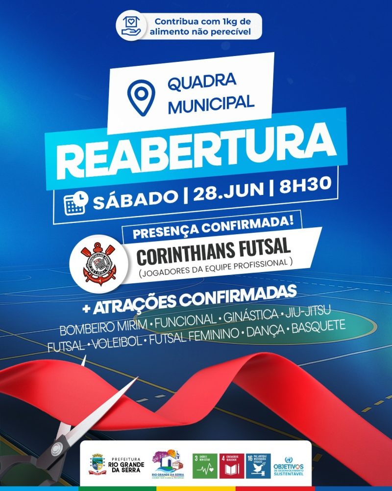 Neste sábado (28.06), Rio Grande da Serra celebrará a tão aguardada reabertura da Quadra Municipal.