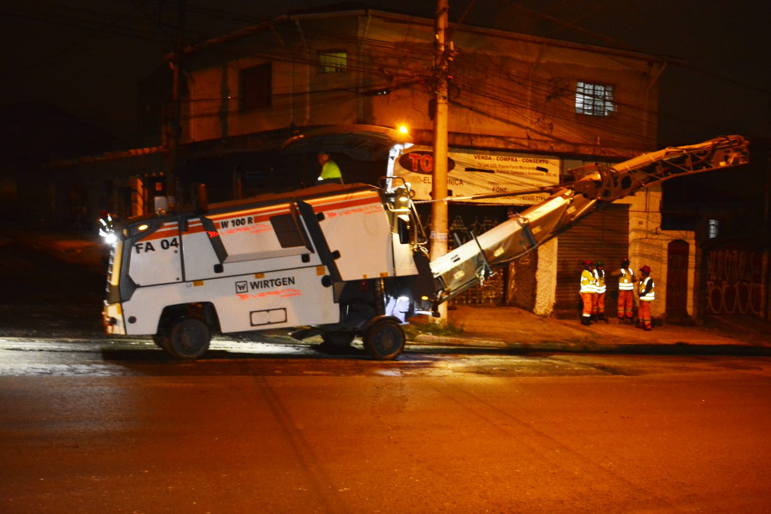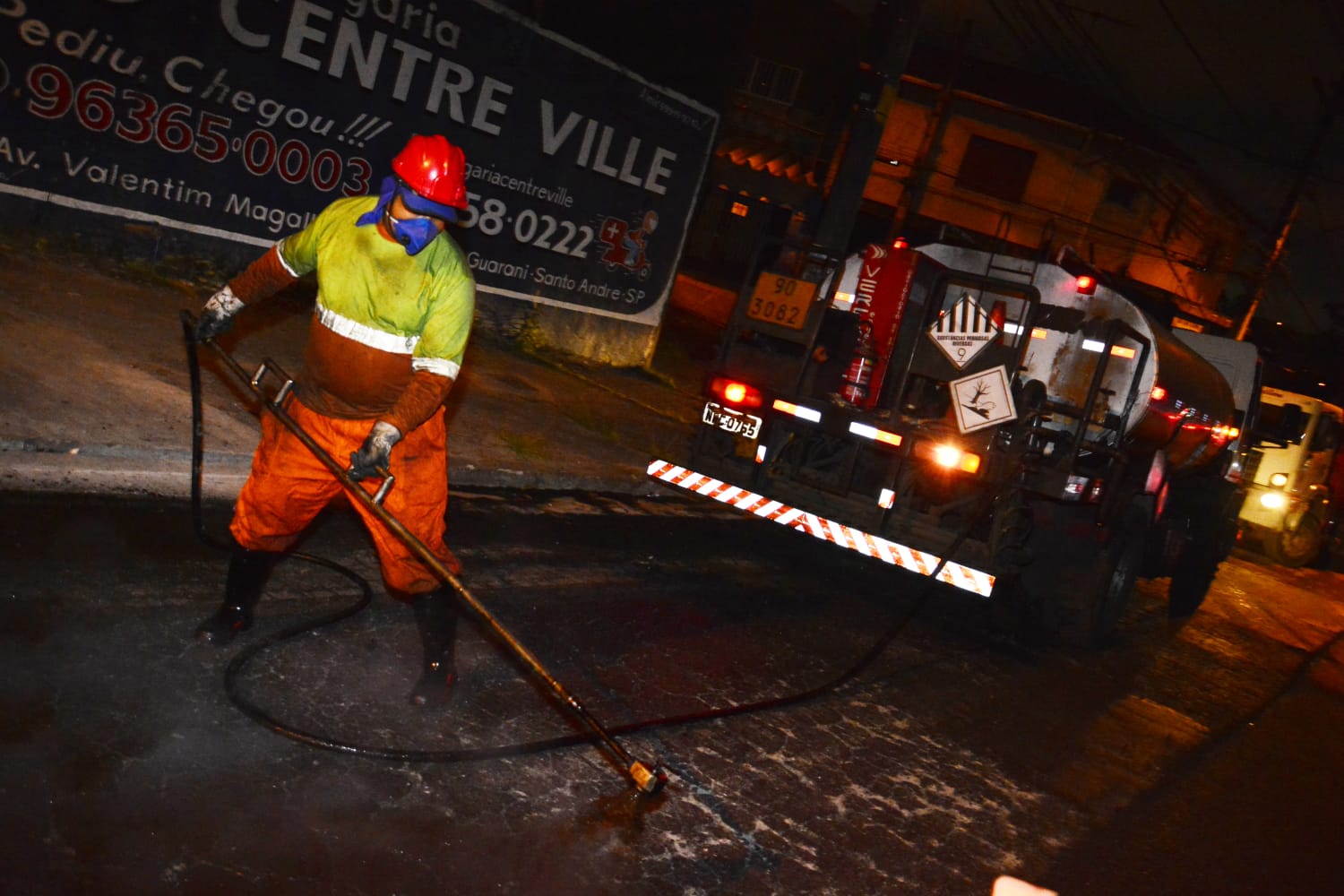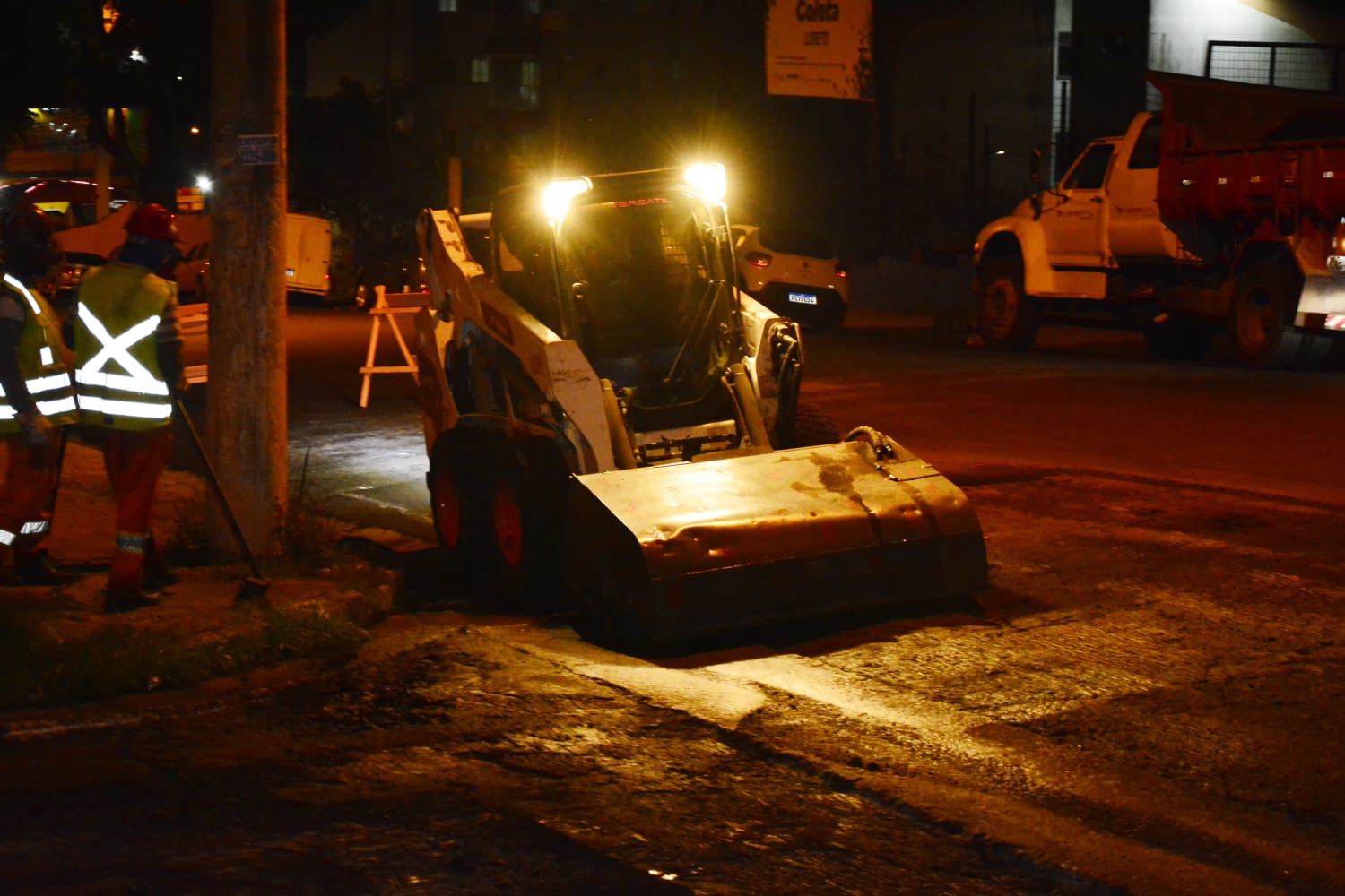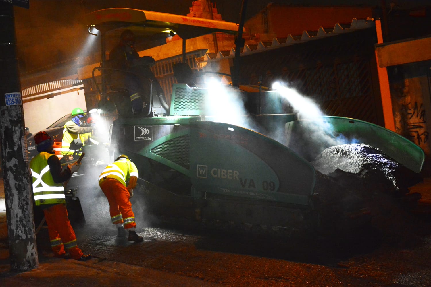 A região da Vila Luzita, em Santo André, recebe obras do programa Rua Nova durante o período noturno, com trabalhos que se estendem até a madrugada.