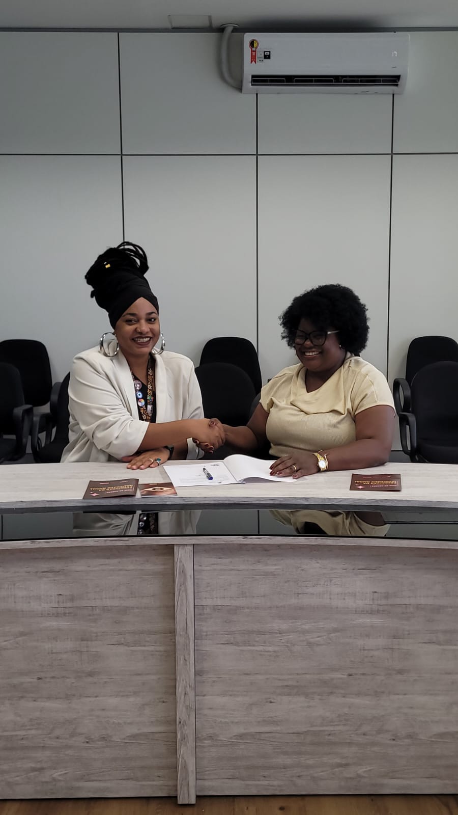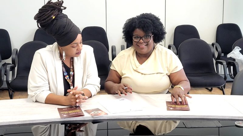 Melina lima, coordenadora de Articulação Interfederativa do Ministério da Igualdade Racial, com a vice-prefeita, Vilma Marcelino. Fotos: PMRGS