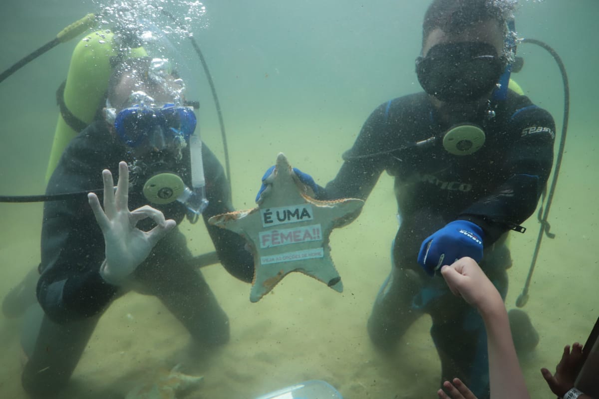 A terceira revelação foi feita a partir de um mergulho, em que os tratadores indicaram ser uma fêmea ao segurar uma réplica de estrela-do-mar.