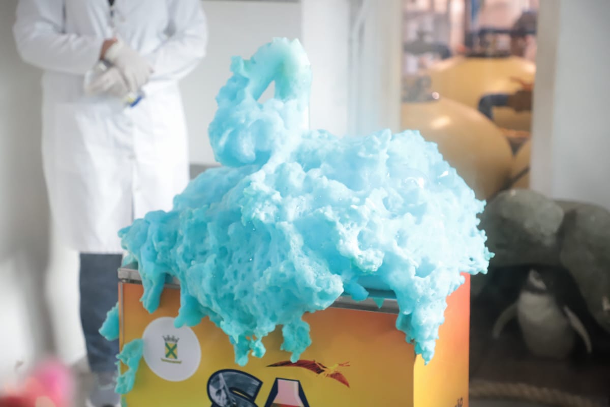 A quarta revelação veio com a coloração azul a partir do efeito da pasta de elefante, que é assim chamada pelo aspecto de pasta de dente gigante.