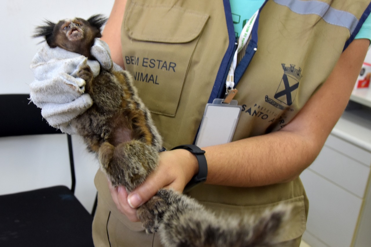 A Secretaria de Meio Ambiente de Santo André resgatou um macaco sagui nas dependências do prédio Executivo da Prefeitura, no Paço Municipal.