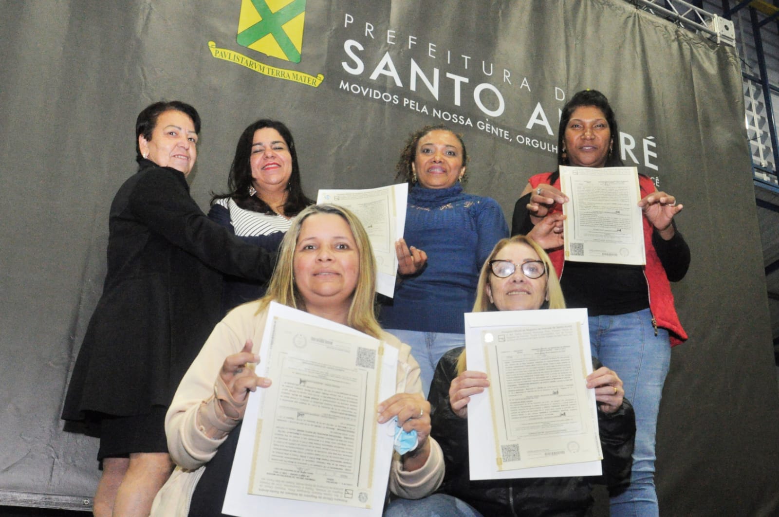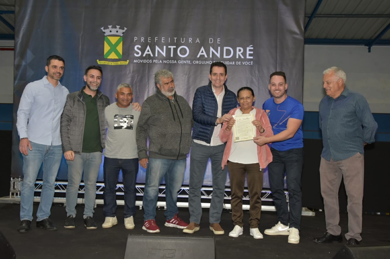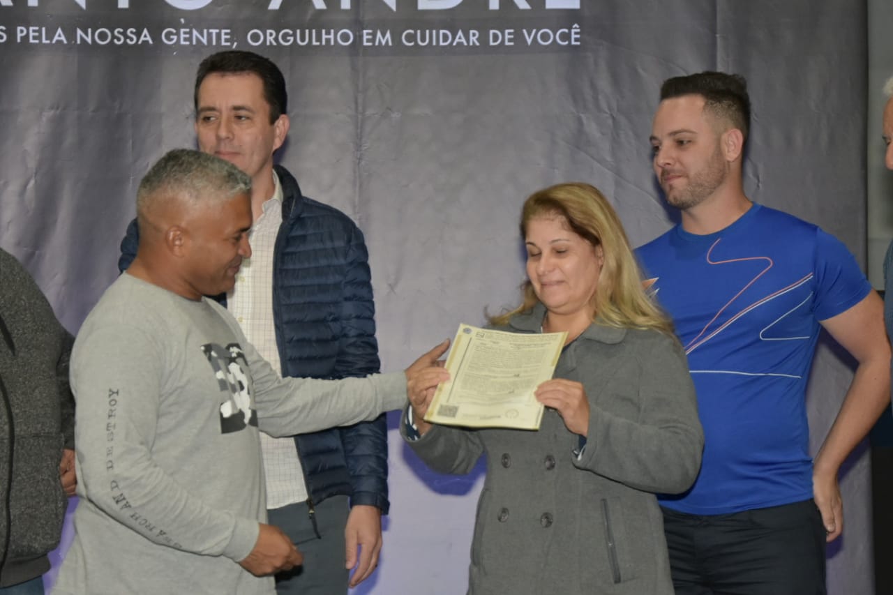 A Prefeitura de Santo André entregou 480 matrículas a moradores do local, em cerimônia no Ginásio Sacadura Cabral.