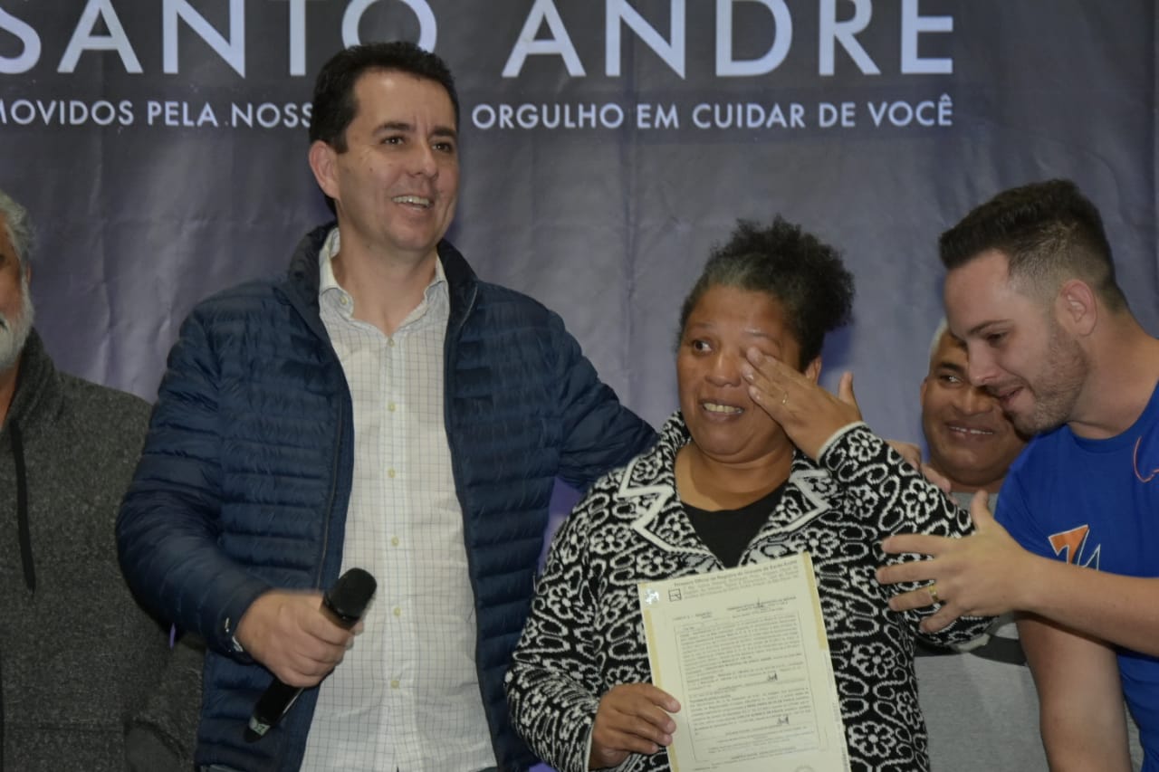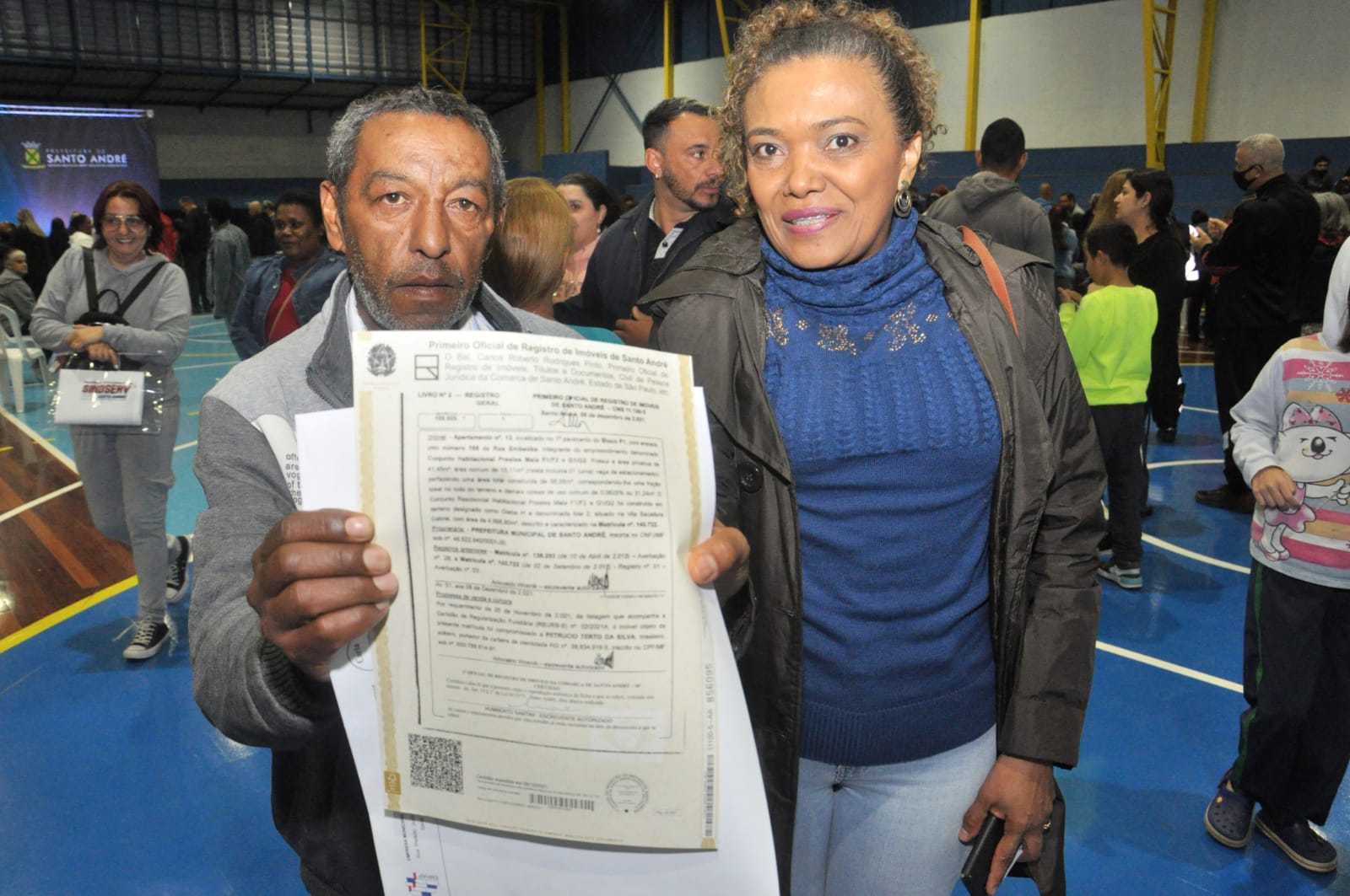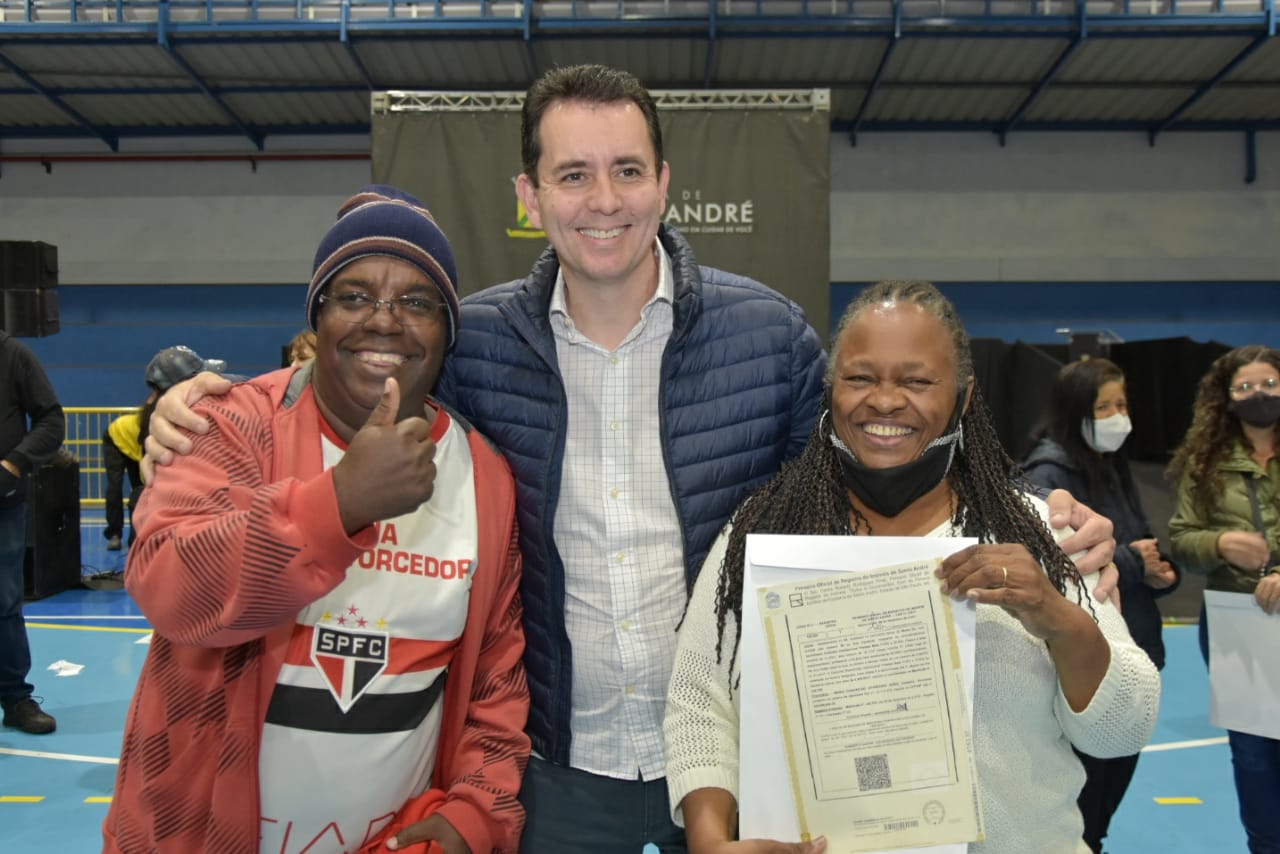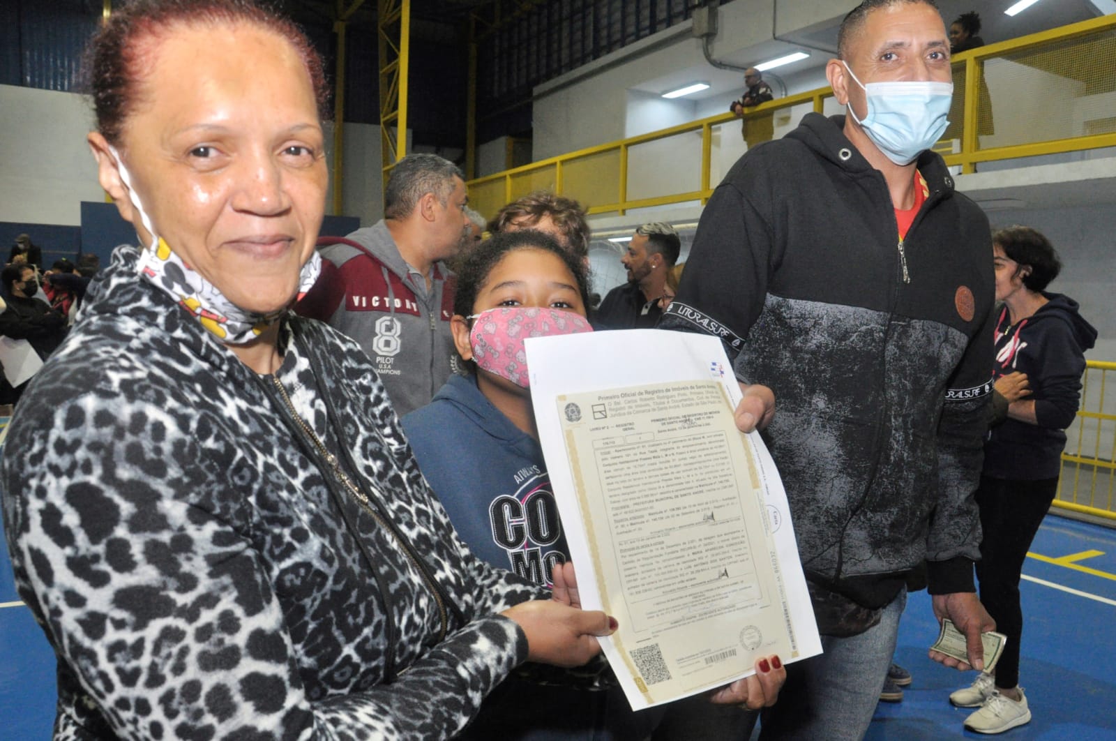A Prefeitura de Santo André entregou 480 matrículas a moradores do local, em cerimônia no Ginásio Sacadura Cabral.