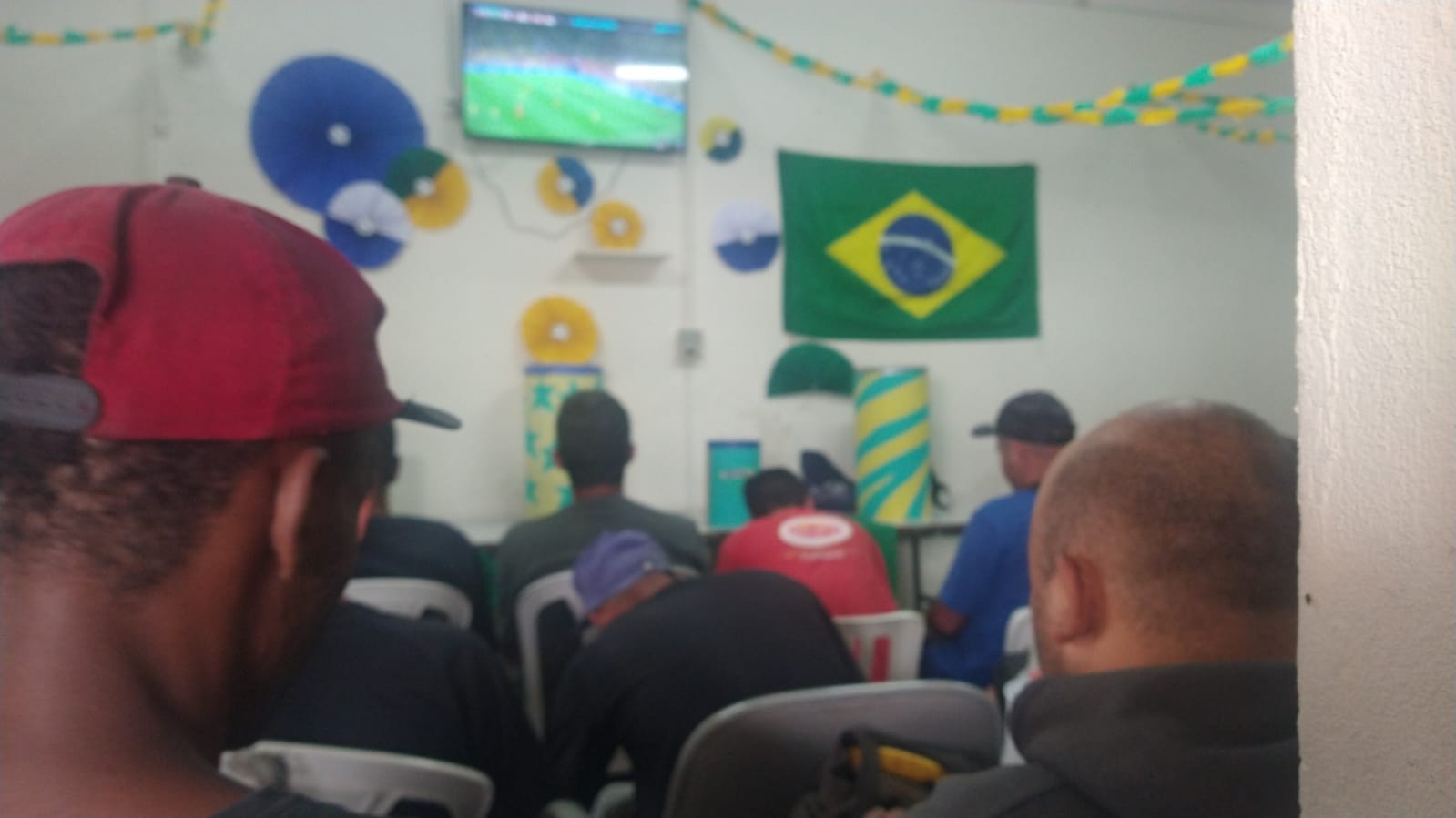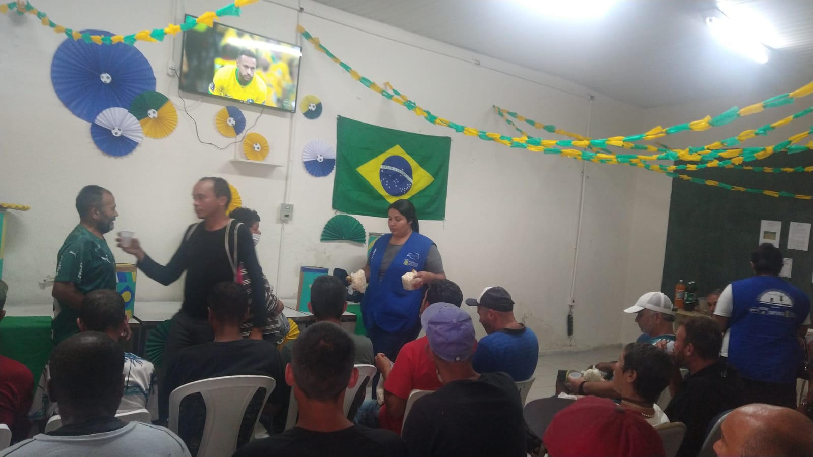 Além disso, foi disponibilizada uma televisão para que pessoas em situação de rua possam assistir às partidas.