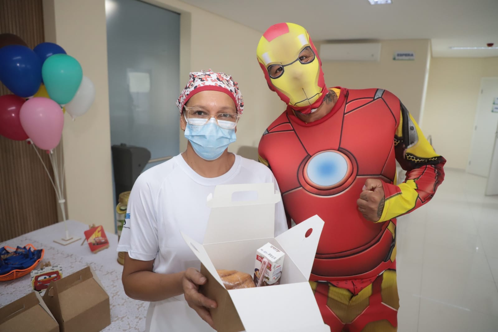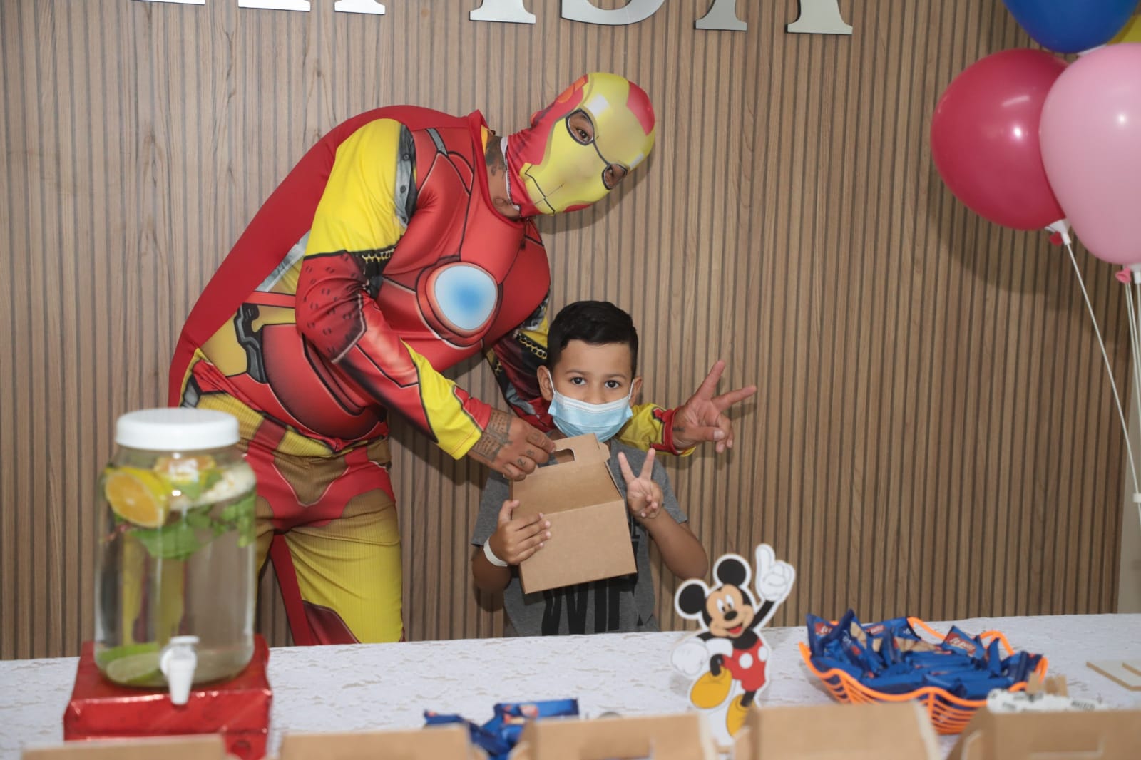 Na saída, as crianças receberam, além disso, uma lembrancinha com kit lanche e tiraram fotos com personagens infantis.