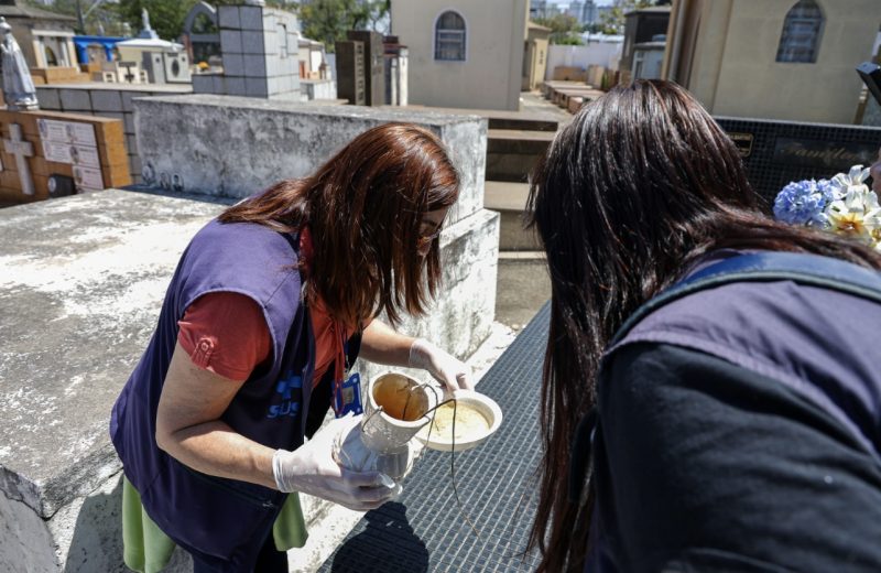 Na manhã desta quarta-feira (12.11), por exemplo, os agentes do CCZ e os estudantes da USCS visitaram os cemitérios São Caetano, no Bairro Santa Paula, e da Saudade, no Bairro Cerâmica.