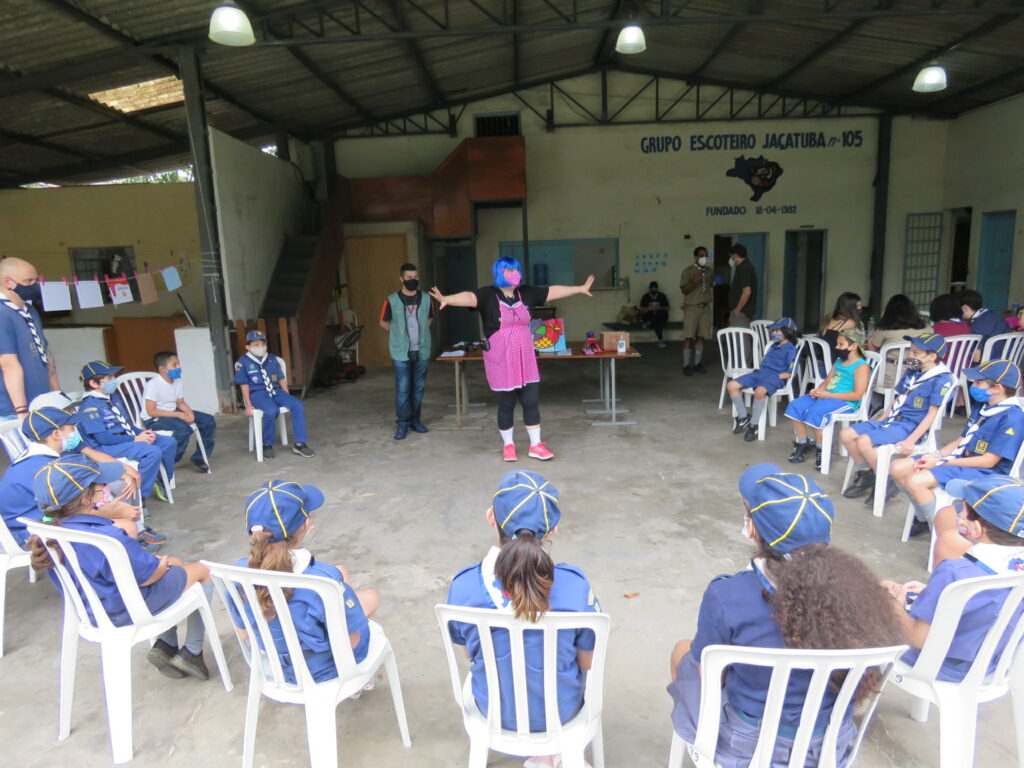 A primeira apresentação presencial ocorreu neste sábado (16.10) para “lobinhos” do Grupo Escoteiro Jaçatuba, no Parque do mesmo nome.