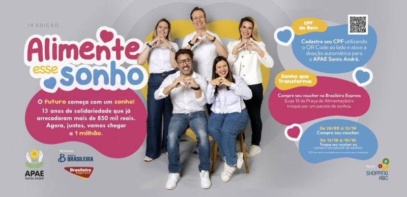 O Shopping ABC abraça, em primeiro lugar, mais uma causa ao apoiar a 14ª edição da campanha “Alimente esse Sonho”, uma iniciativa da Padaria Brasileira com a APAE de Santo André.