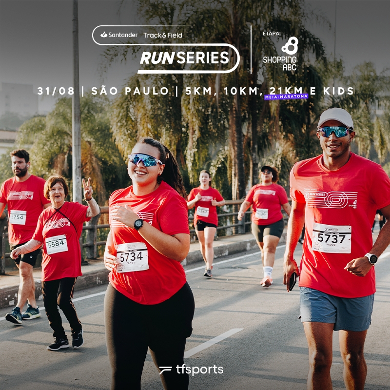 Neste 31 de agosto (domingo), o Shopping ABC sediará, em primeiro lugar, mais uma etapa da Santander Track&Field Run Series, promovida pela TFSports.