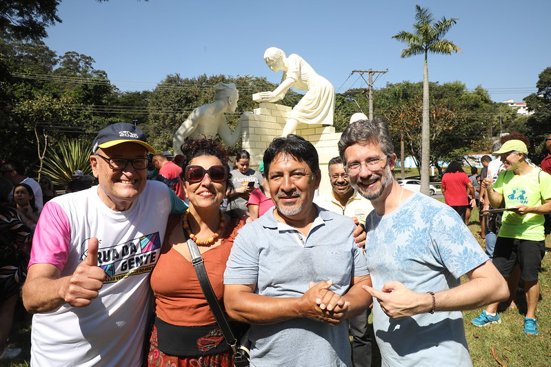 Além de conhecer e testar o novo parque linear destinado às práticas de atividades como exercícios, alongamentos, corridas e caminhadas, o Prefeito Filippi aproveitou para entregar oficialmente a obra de restauração do Monumento aos Migrantes.